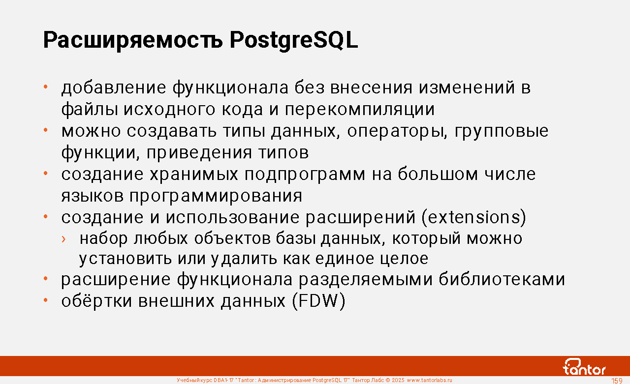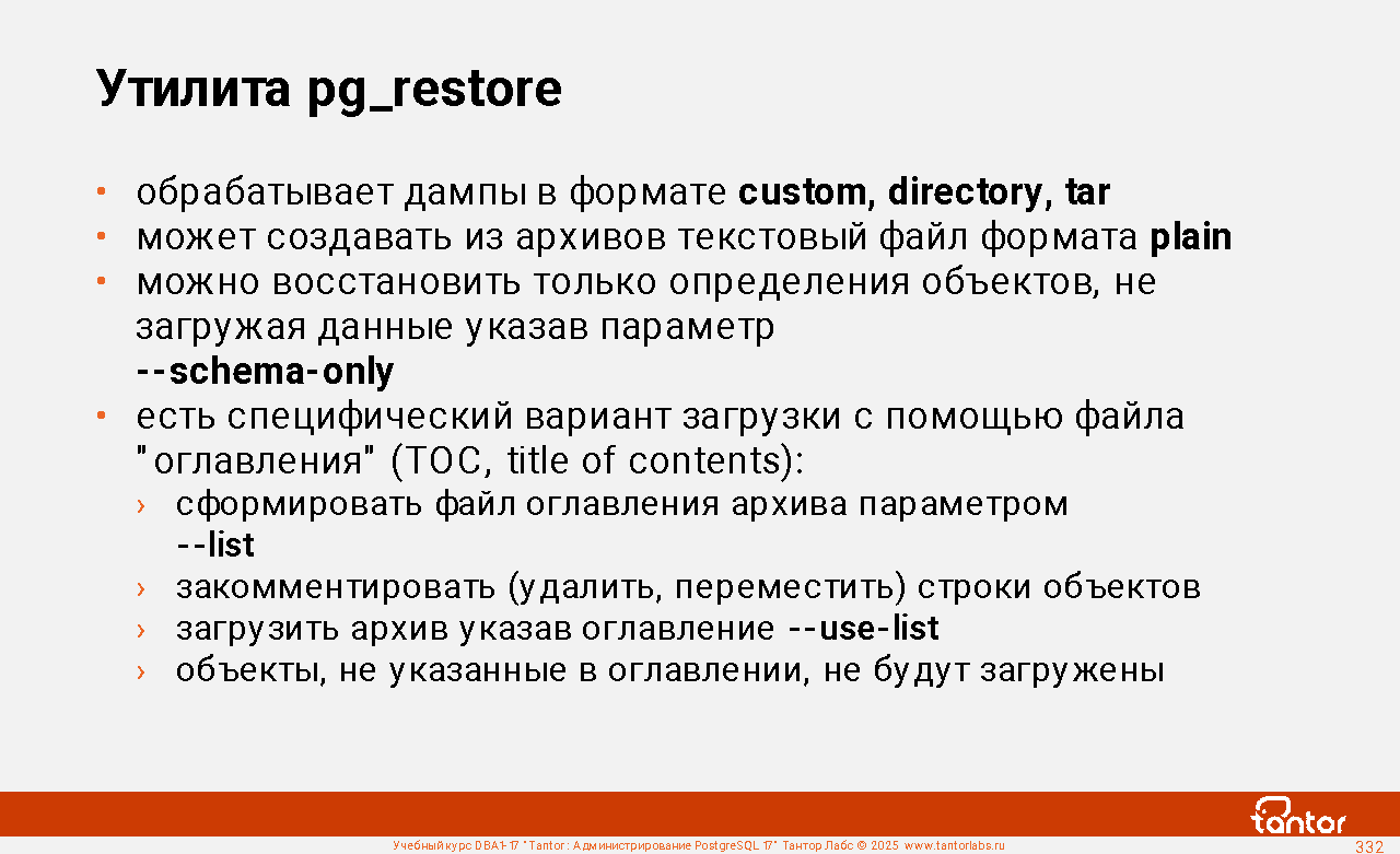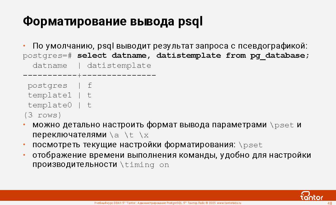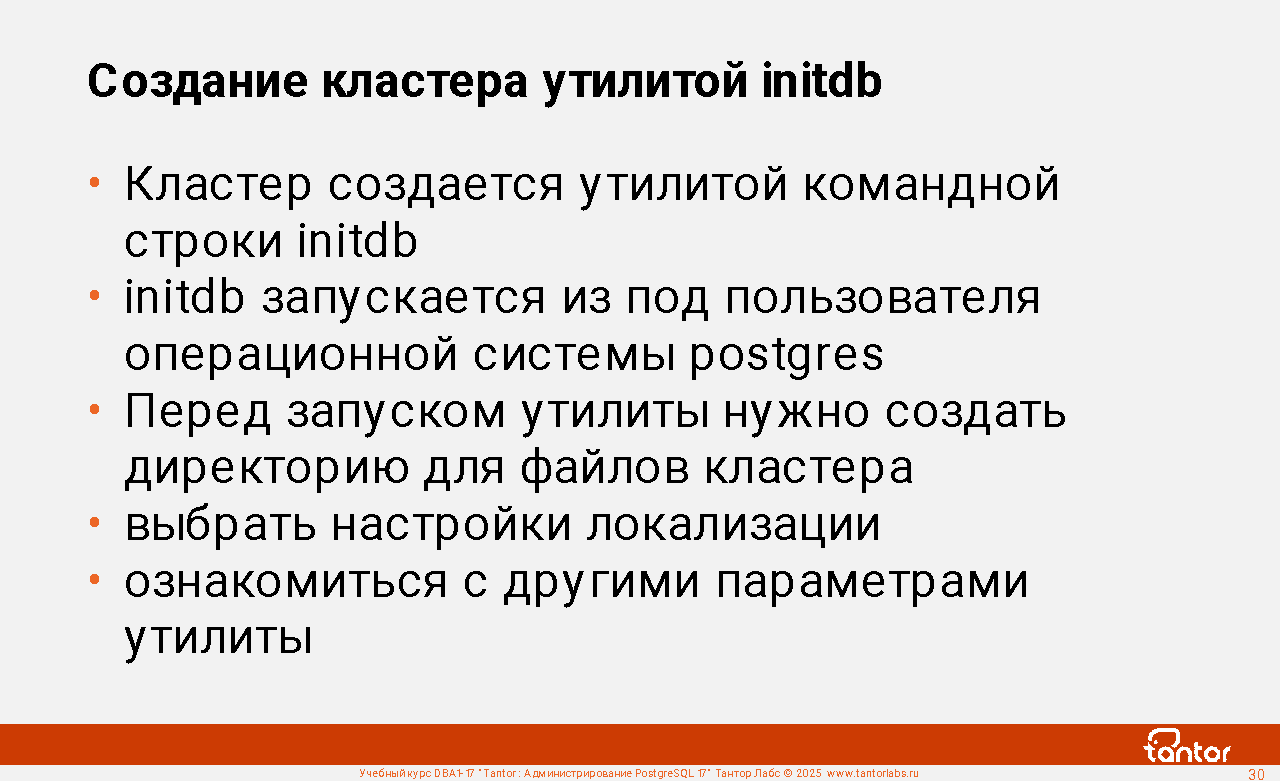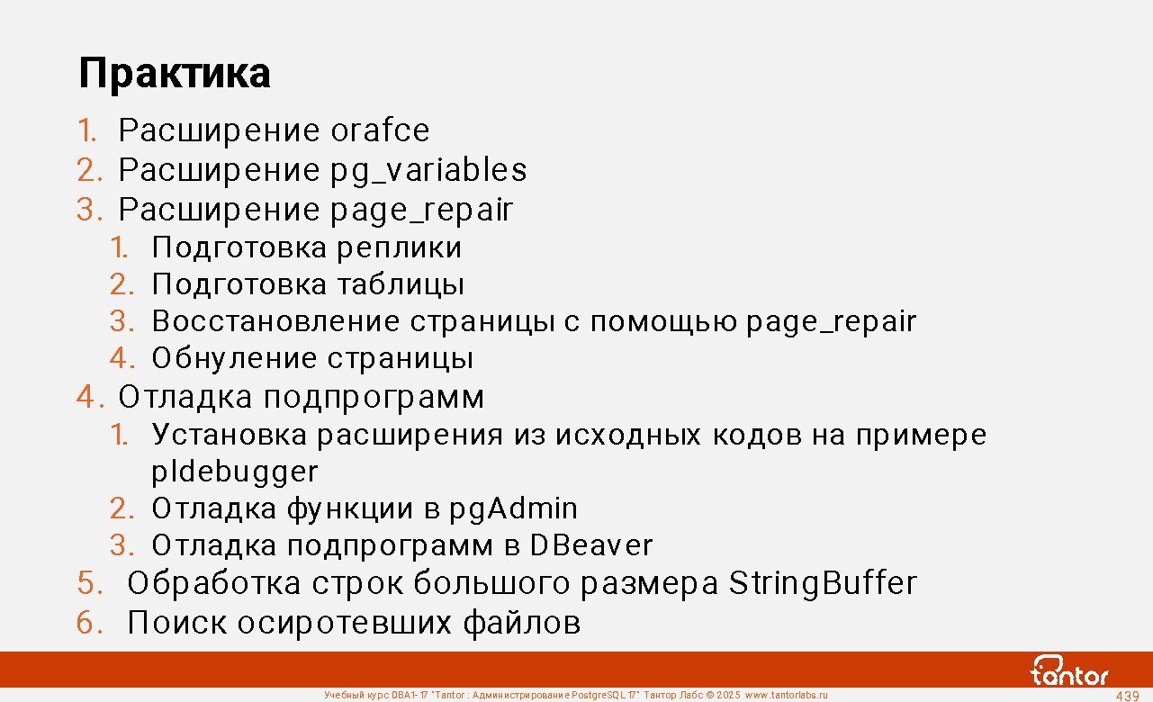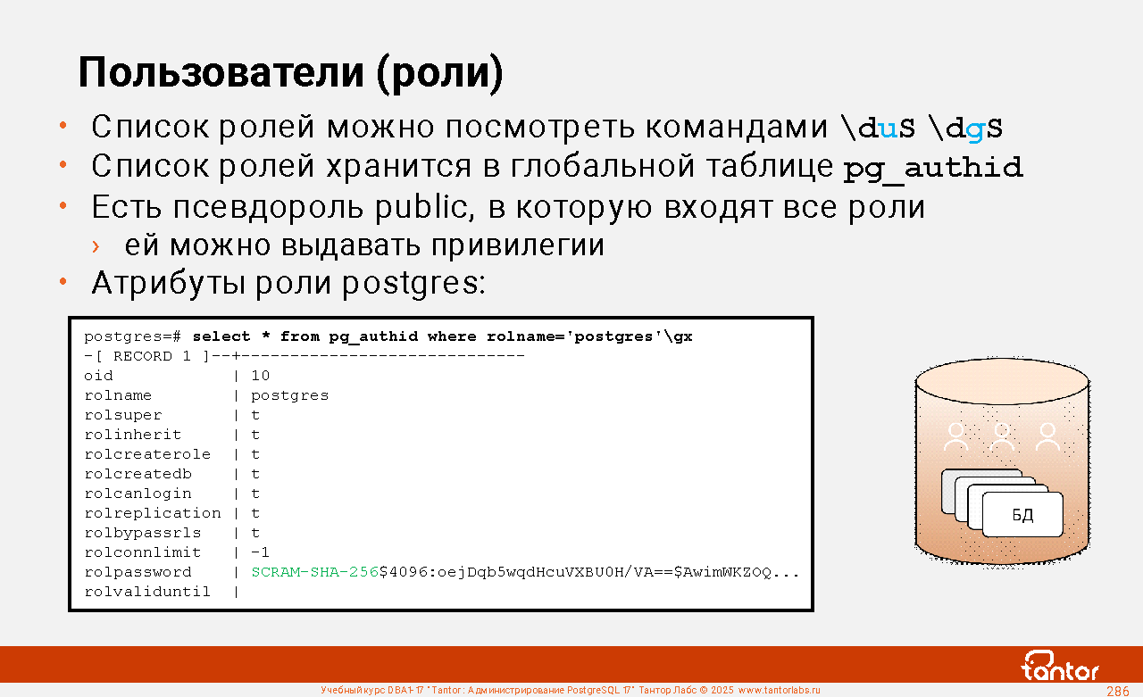 В курсе будут рассмотрены основные задачи администрирования баз данных семейства PostgreSQL на примере СУБД Tantor Postgres и особенности эксплуатации СУБД Tantor Postgres.