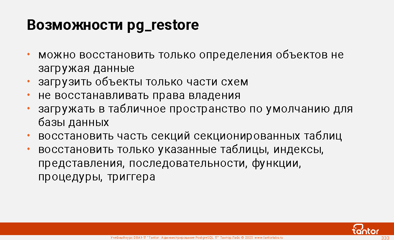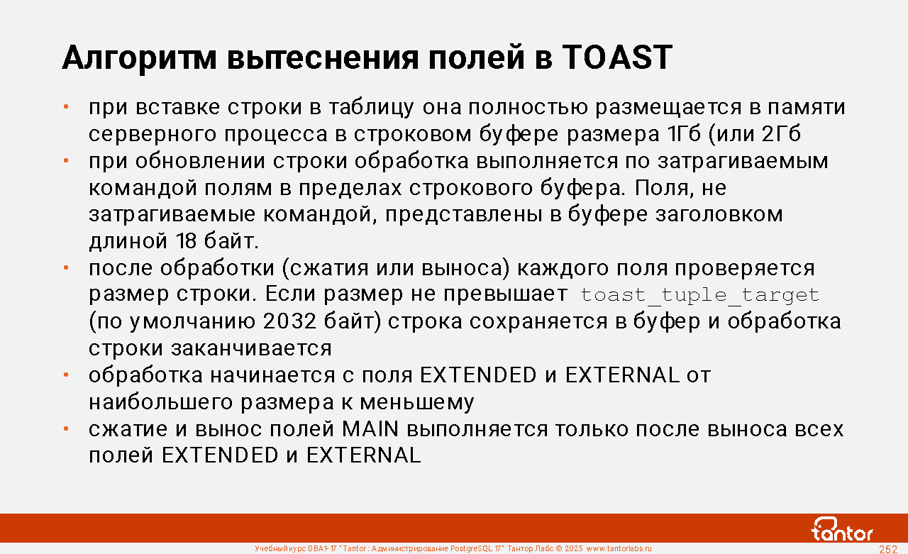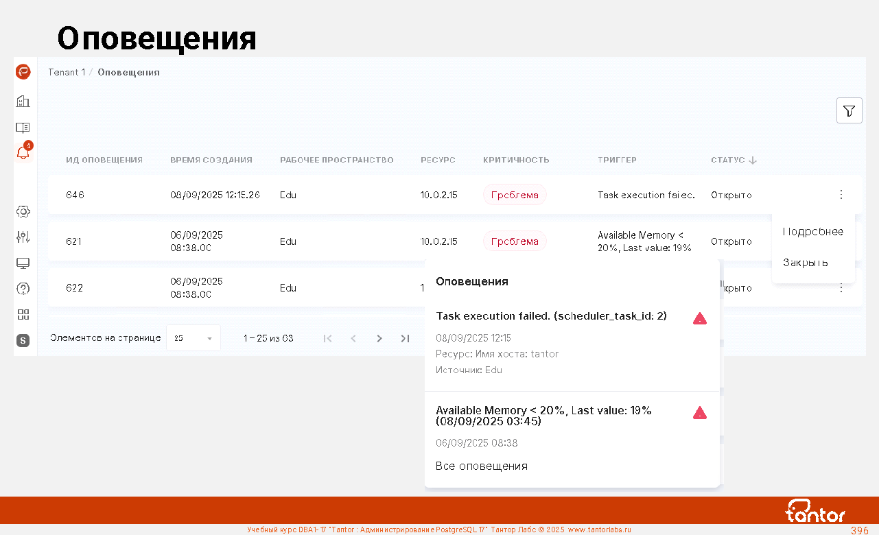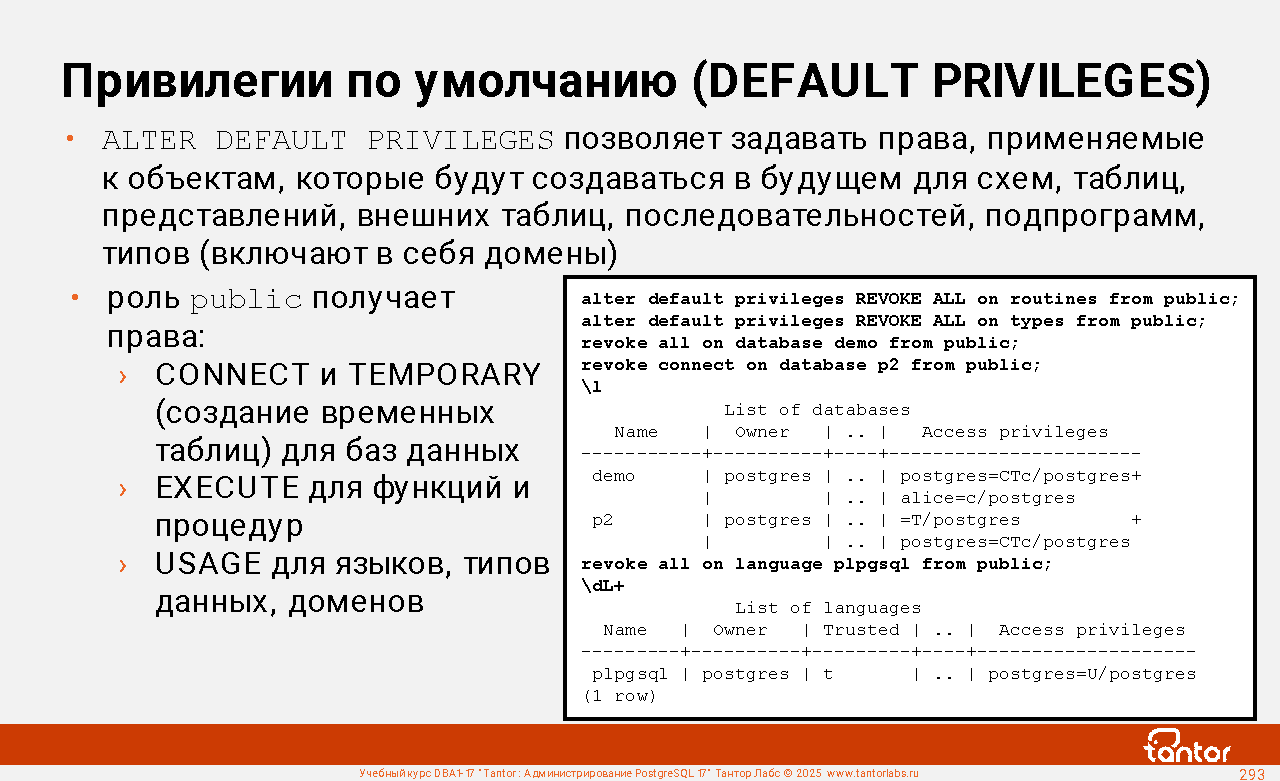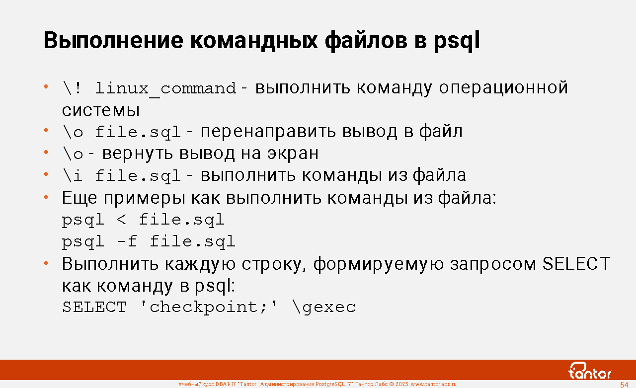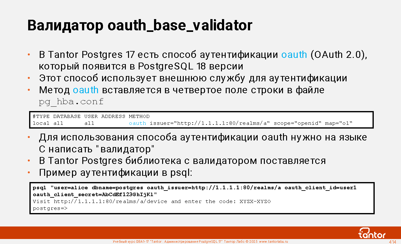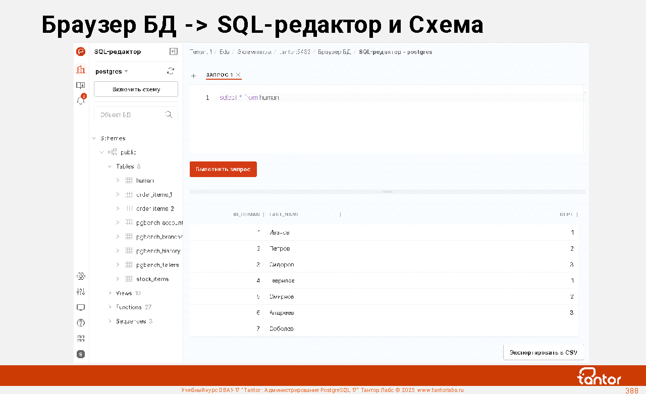 В курсе будут рассмотрены основные задачи администрирования баз данных семейства PostgreSQL на примере СУБД Tantor Postgres и особенности эксплуатации СУБД Tantor Postgres.