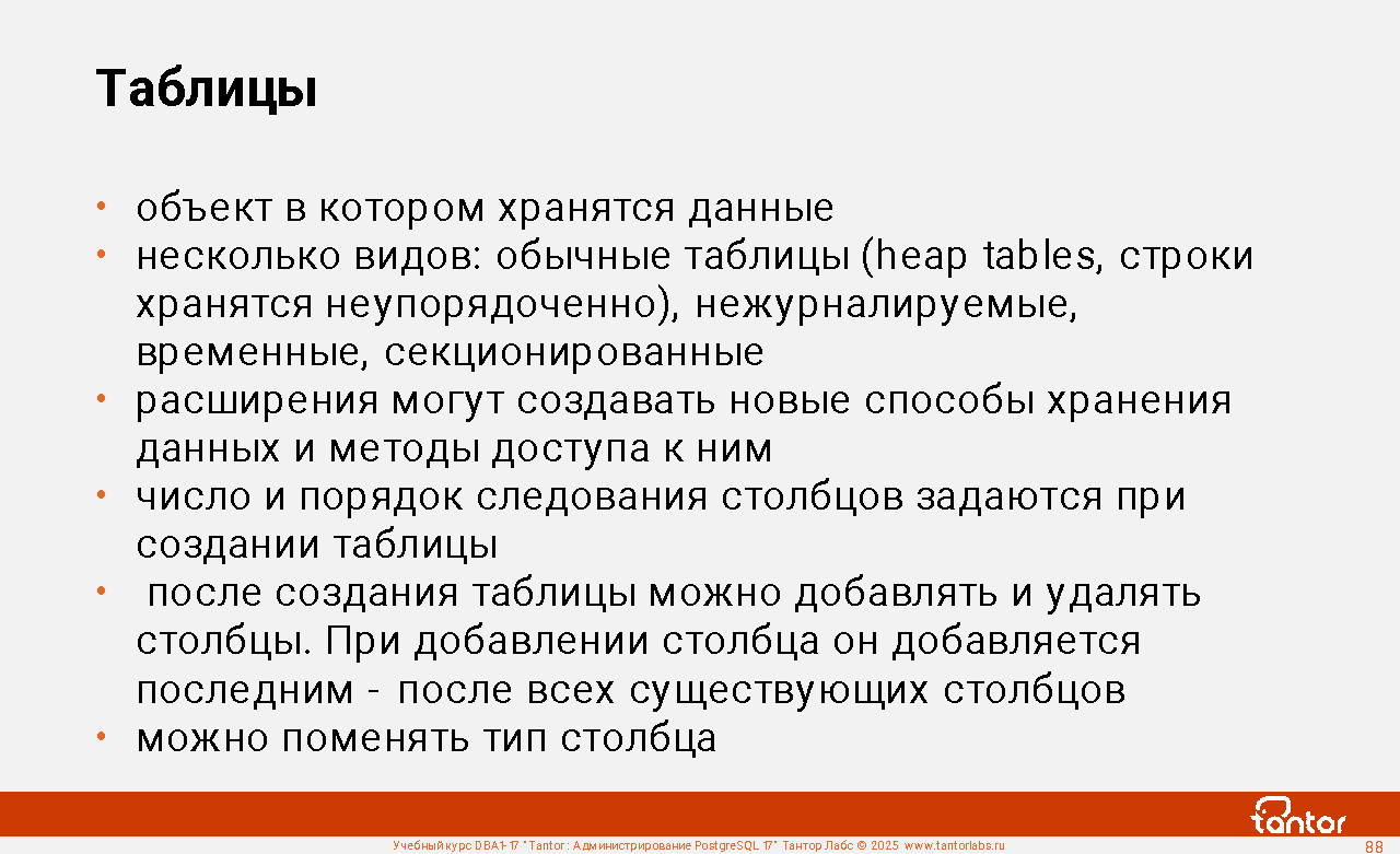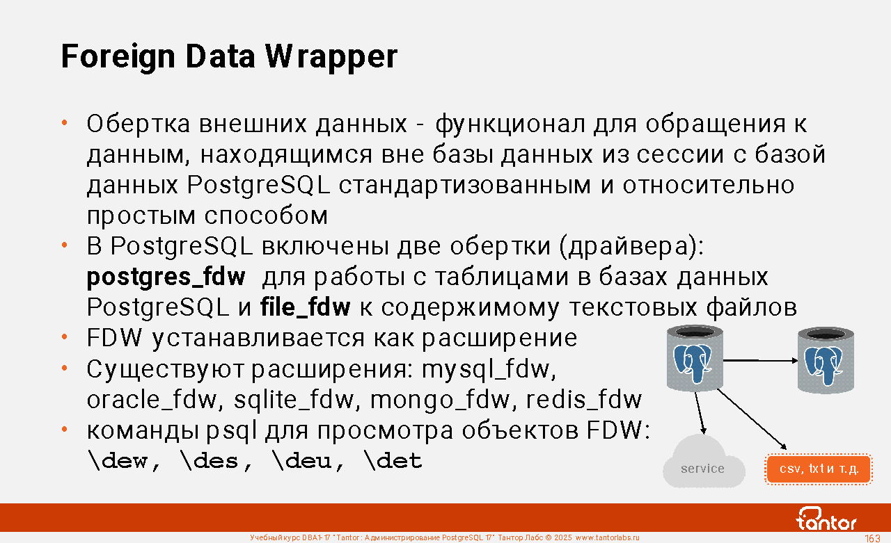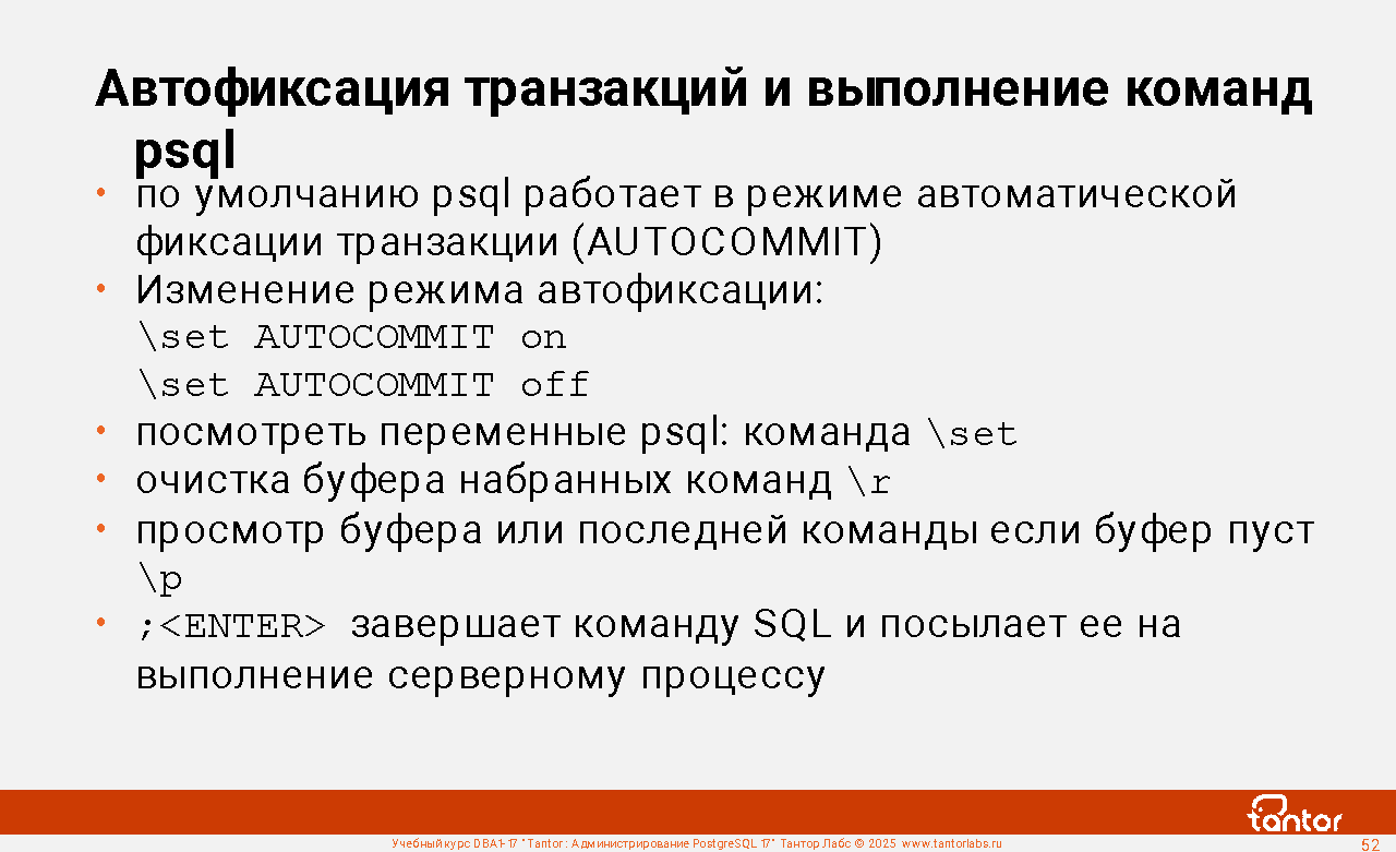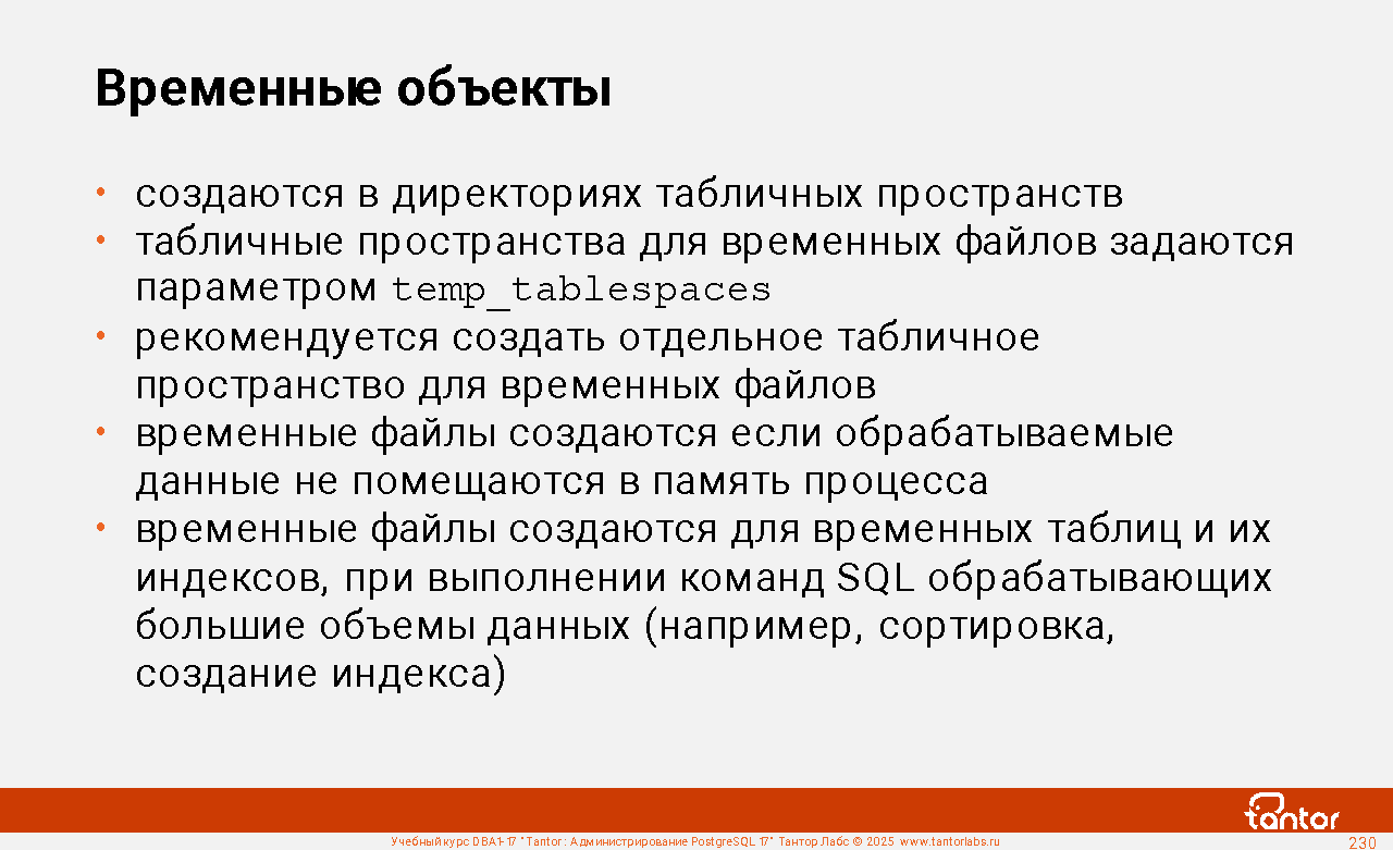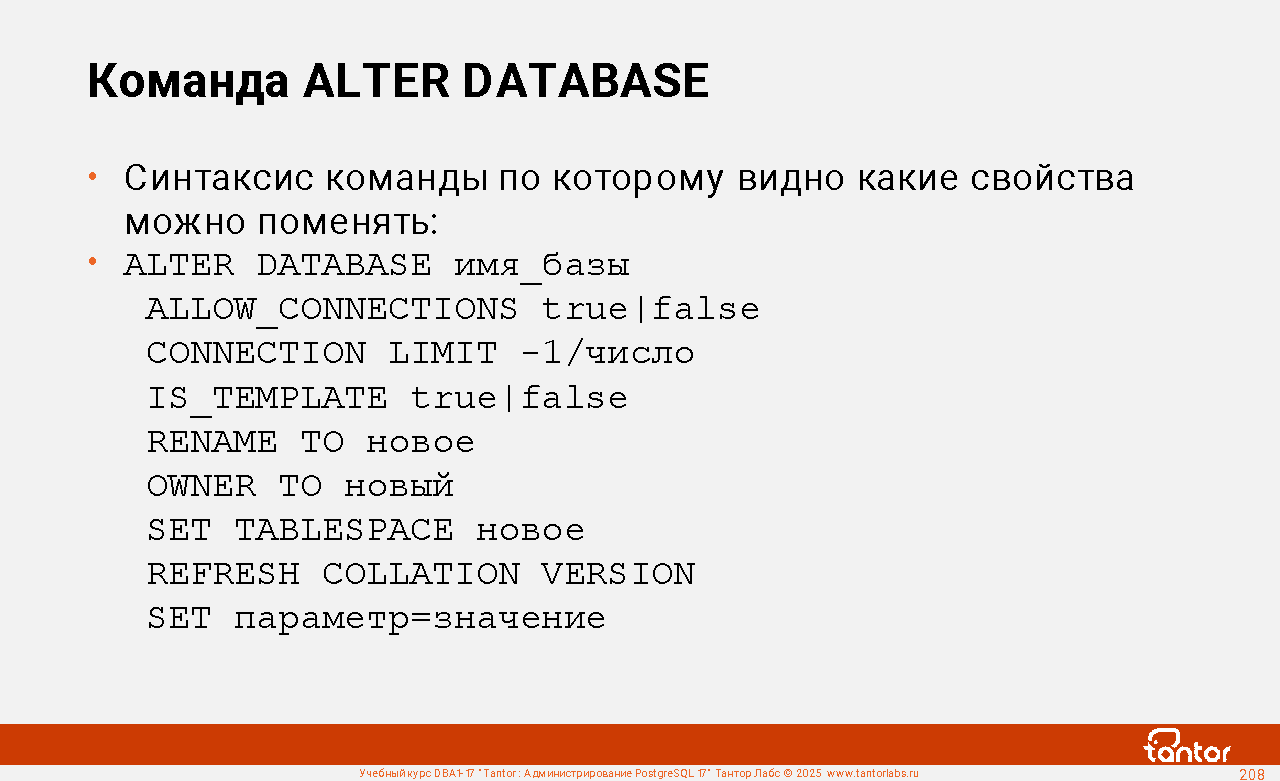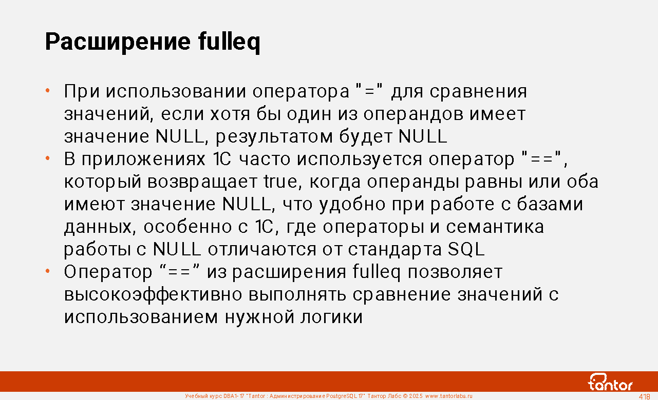 В курсе будут рассмотрены основные задачи администрирования баз данных семейства PostgreSQL на примере СУБД Tantor Postgres и особенности эксплуатации СУБД Tantor Postgres.