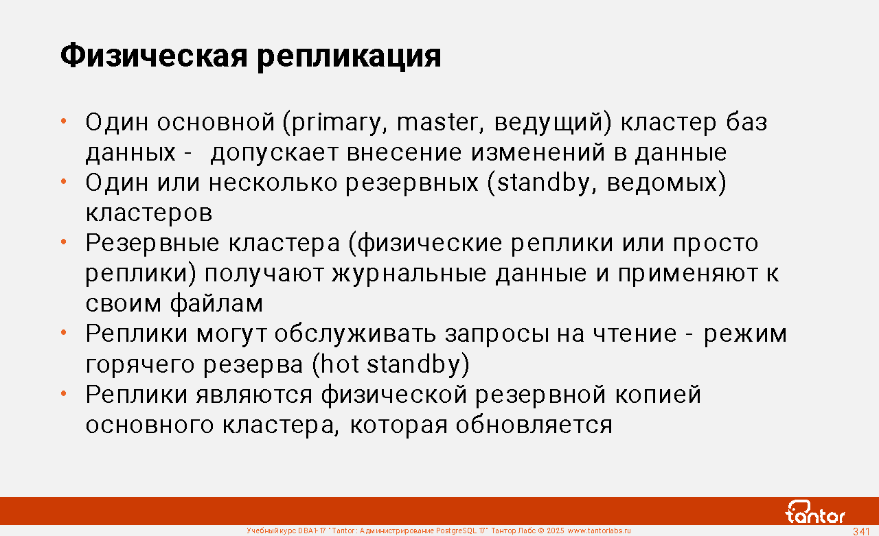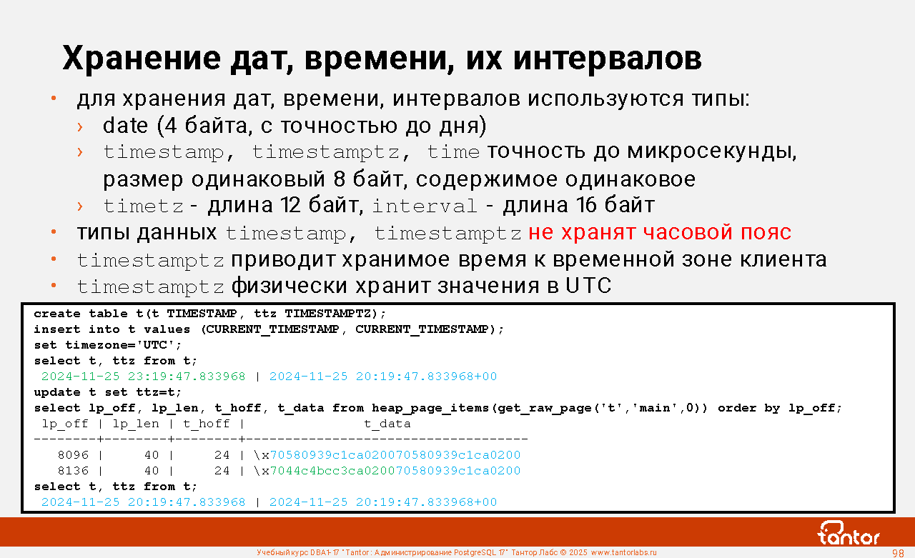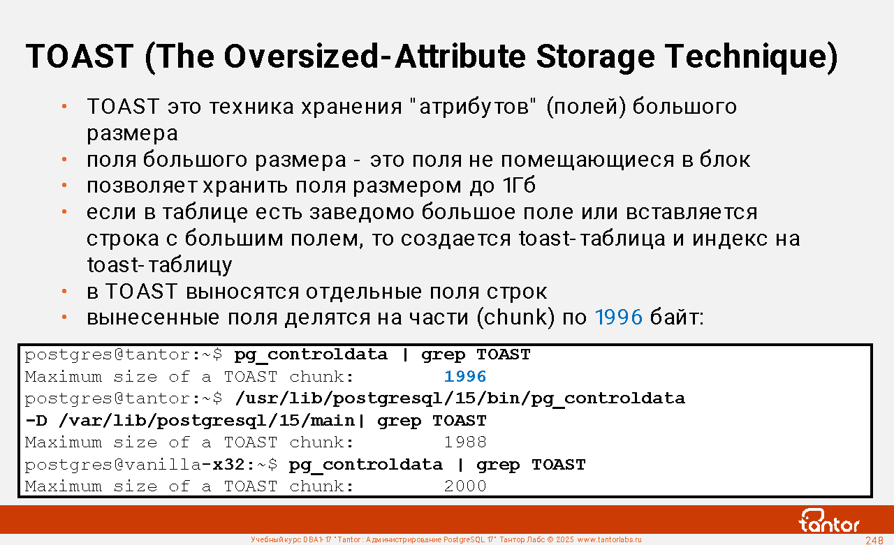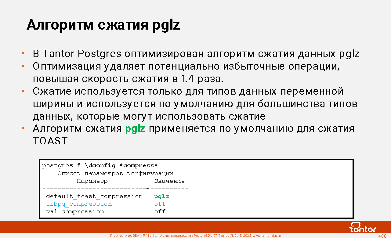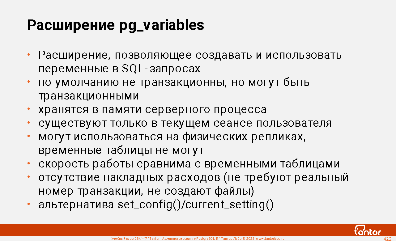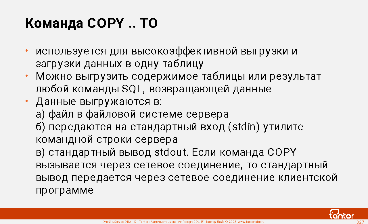В курсе будут рассмотрены основные задачи администрирования баз данных семейства PostgreSQL на примере СУБД Tantor Postgres и особенности эксплуатации СУБД Tantor Postgres.