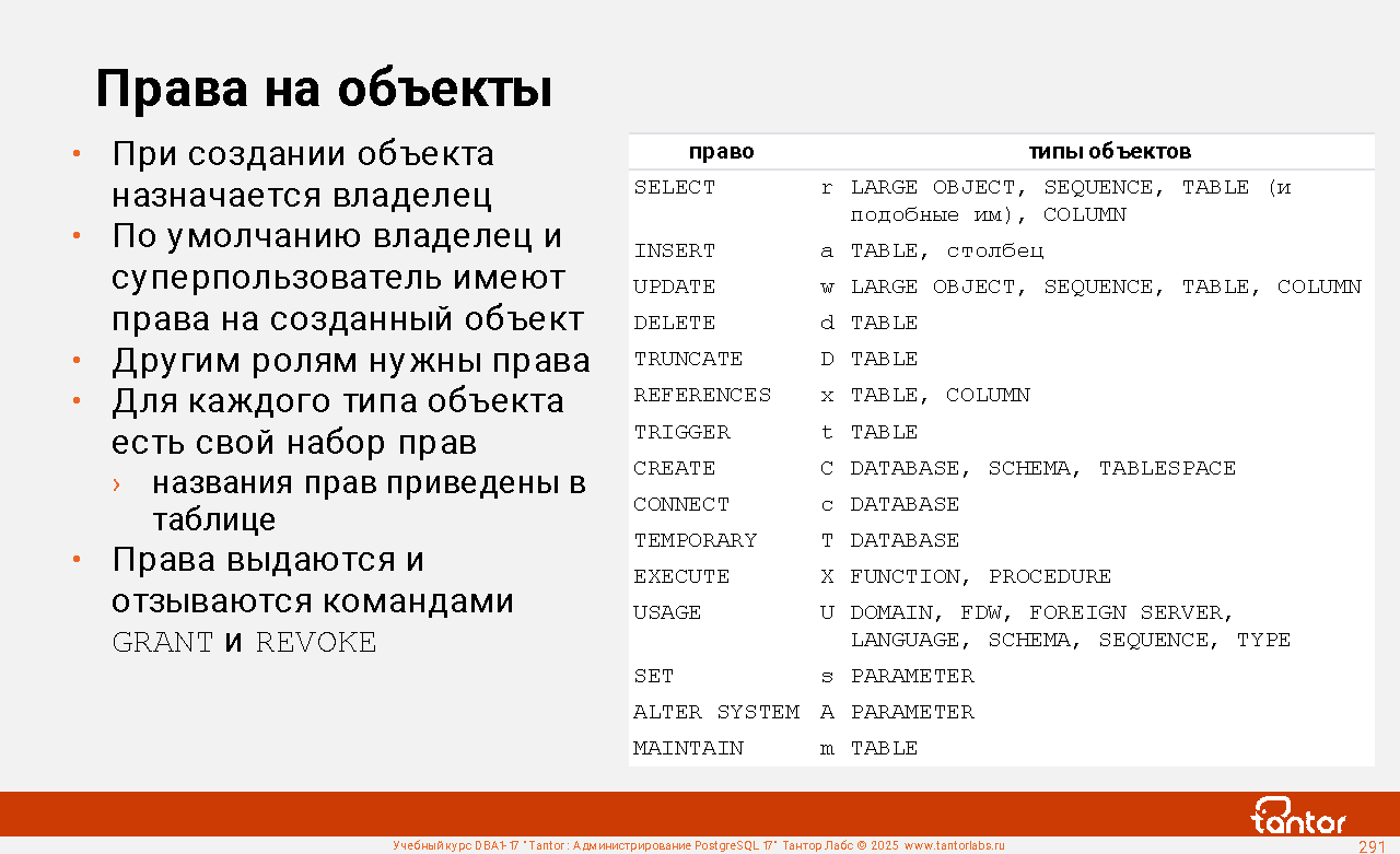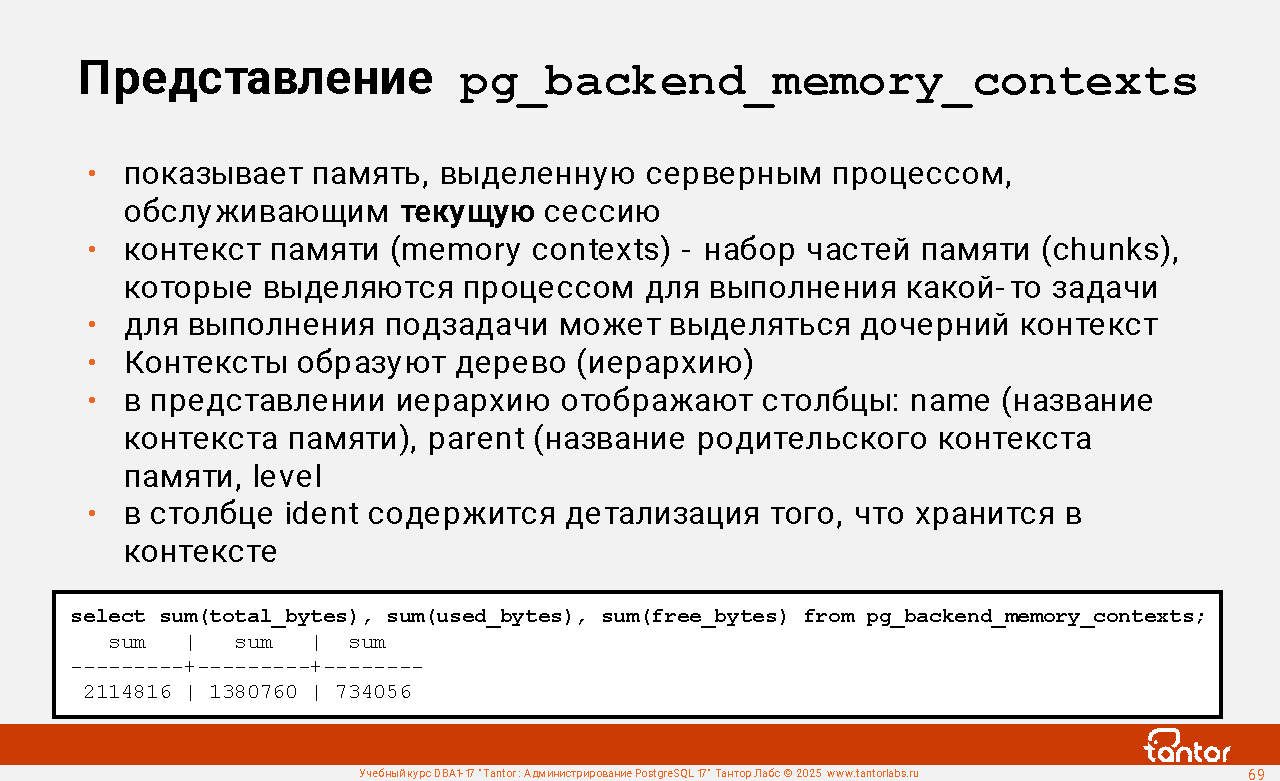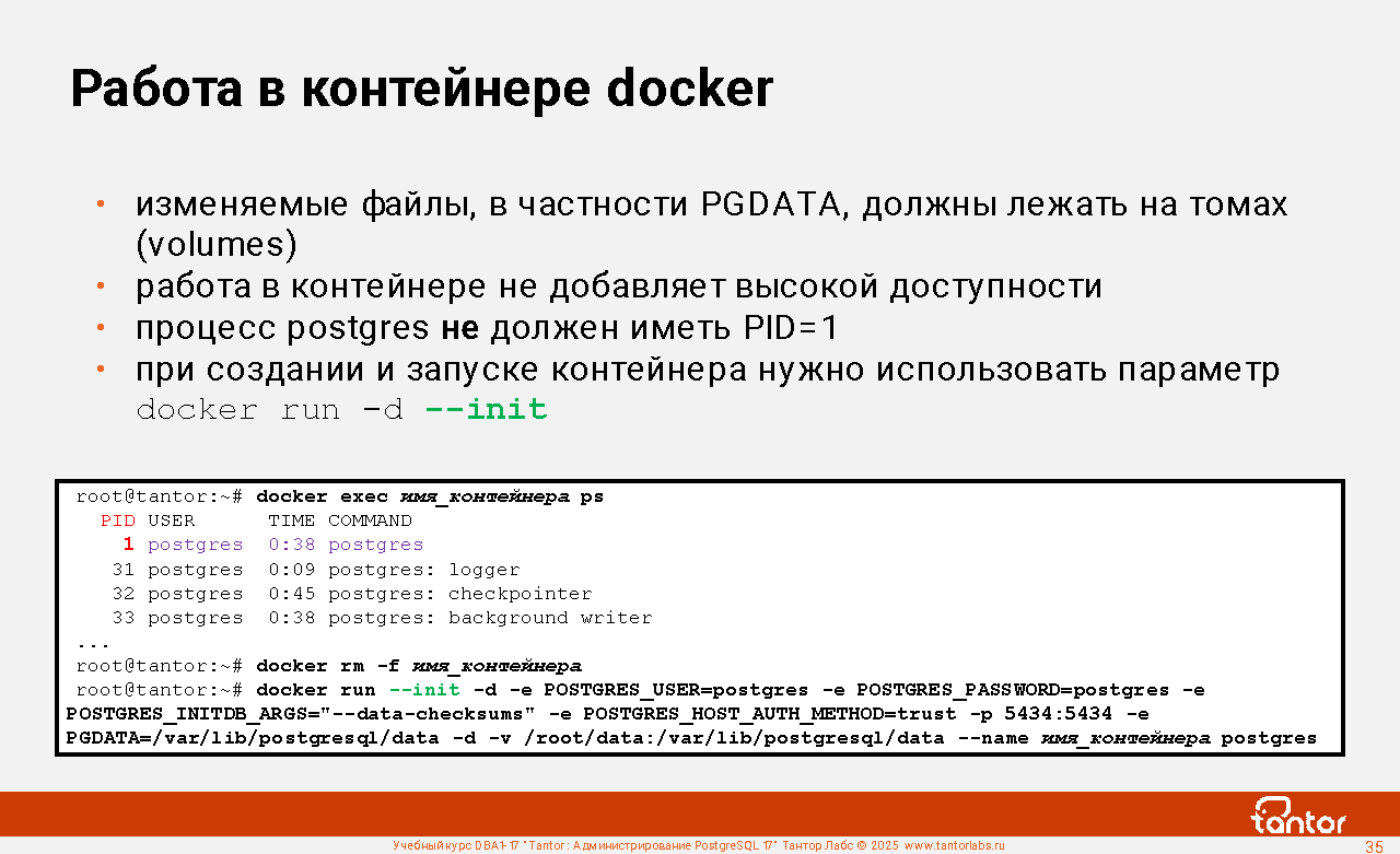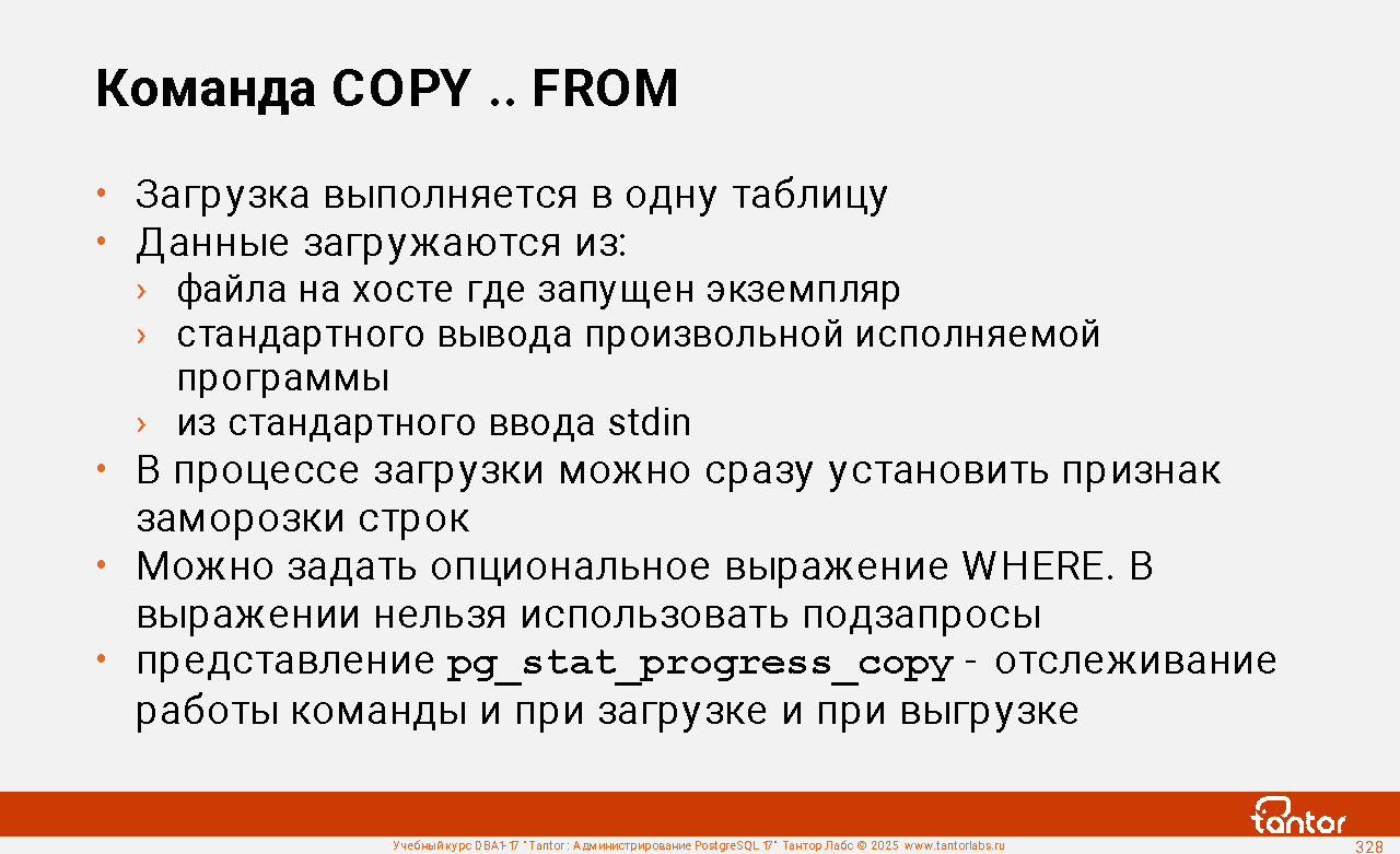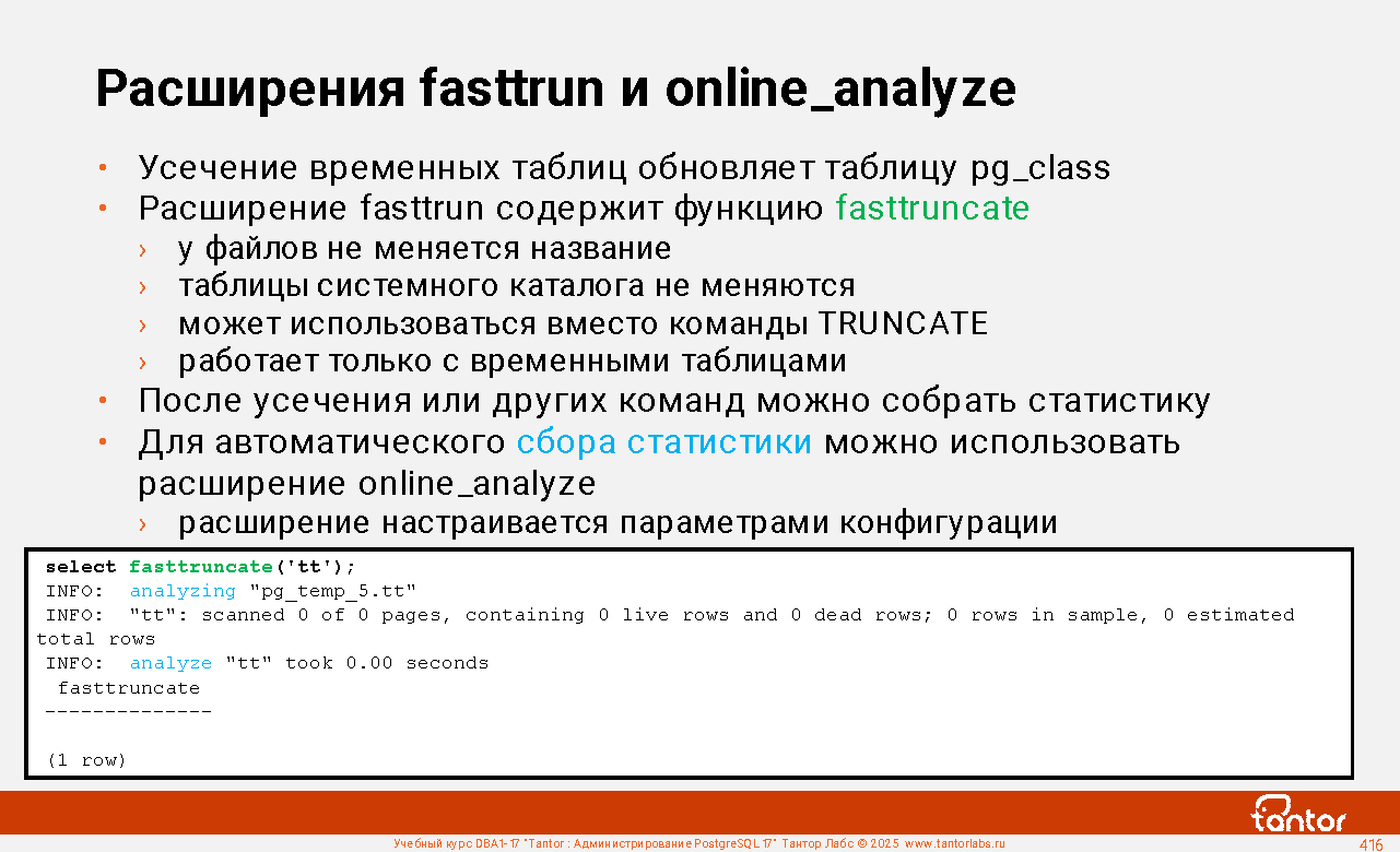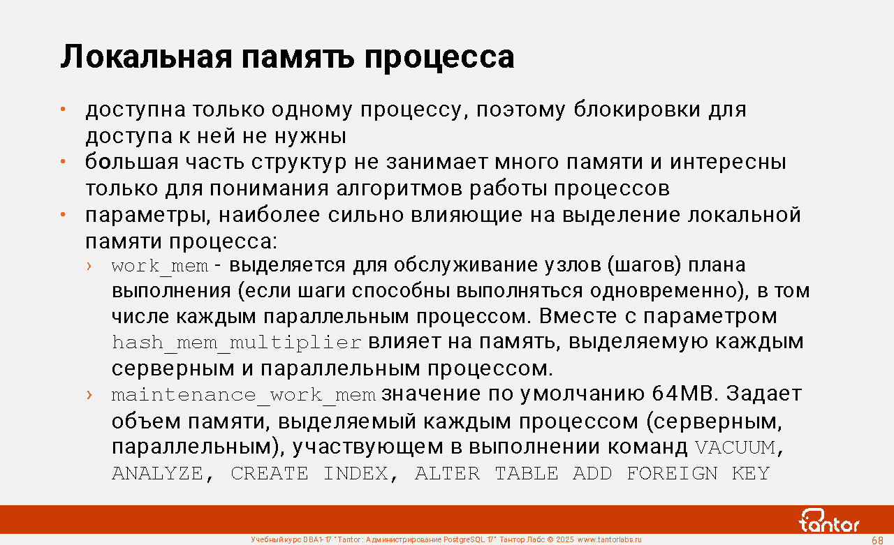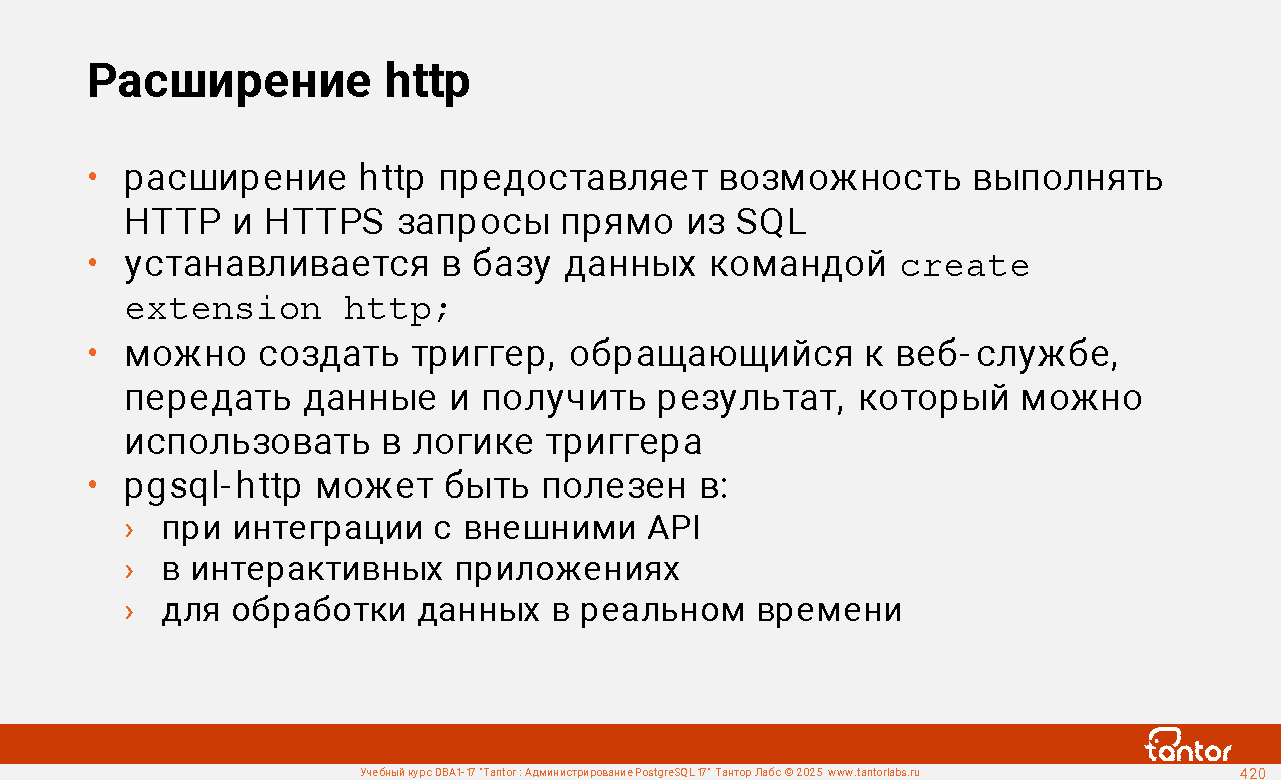 В курсе будут рассмотрены основные задачи администрирования баз данных семейства PostgreSQL на примере СУБД Tantor Postgres и особенности эксплуатации СУБД Tantor Postgres.