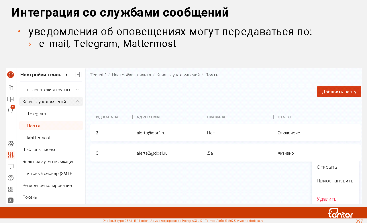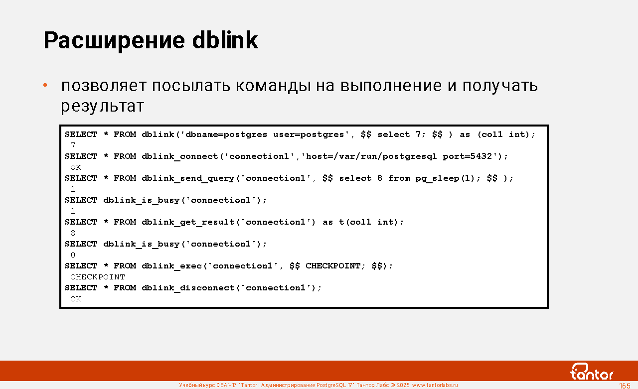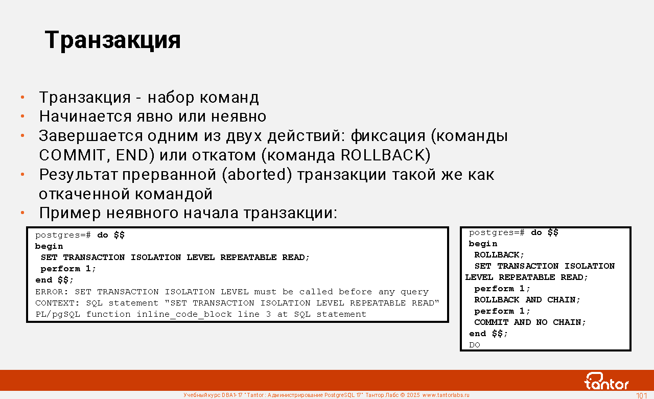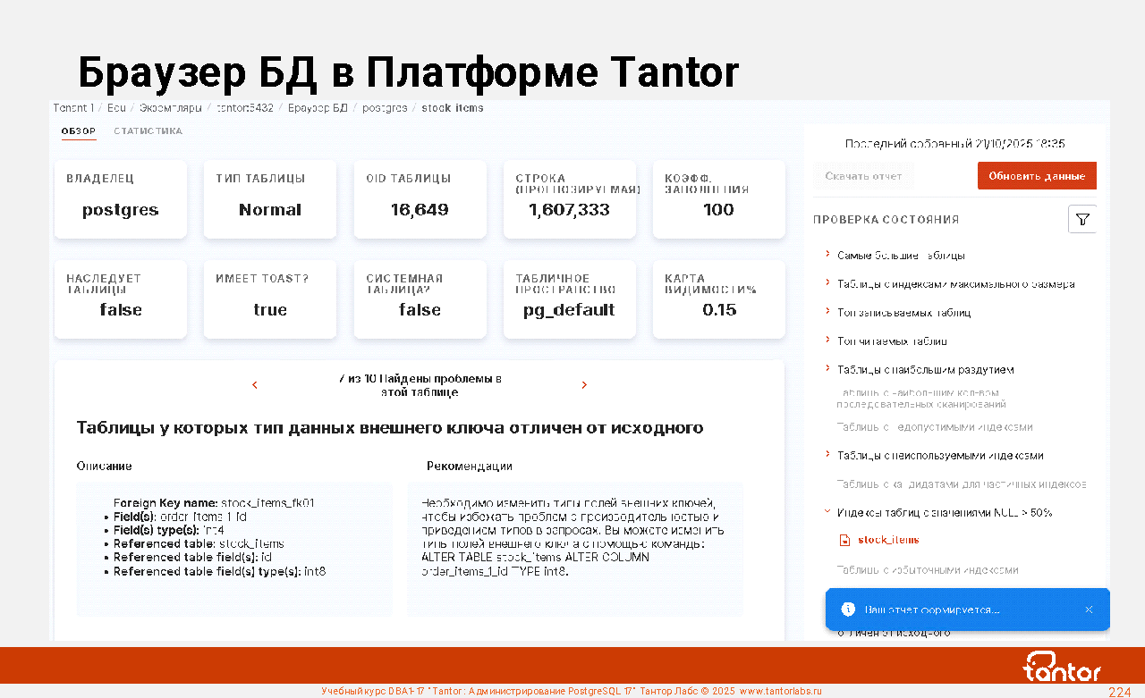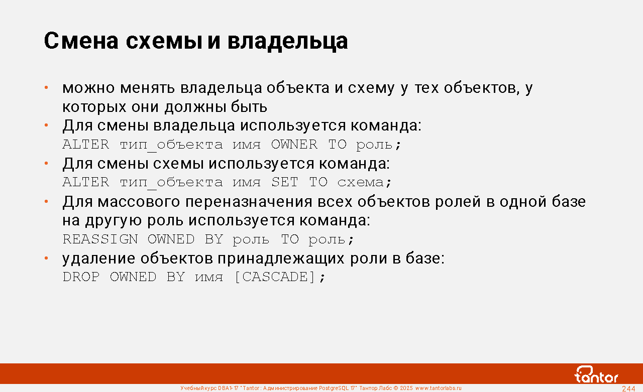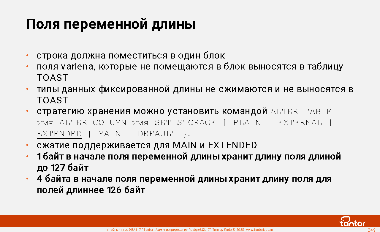 В курсе будут рассмотрены основные задачи администрирования баз данных семейства PostgreSQL на примере СУБД Tantor Postgres и особенности эксплуатации СУБД Tantor Postgres.