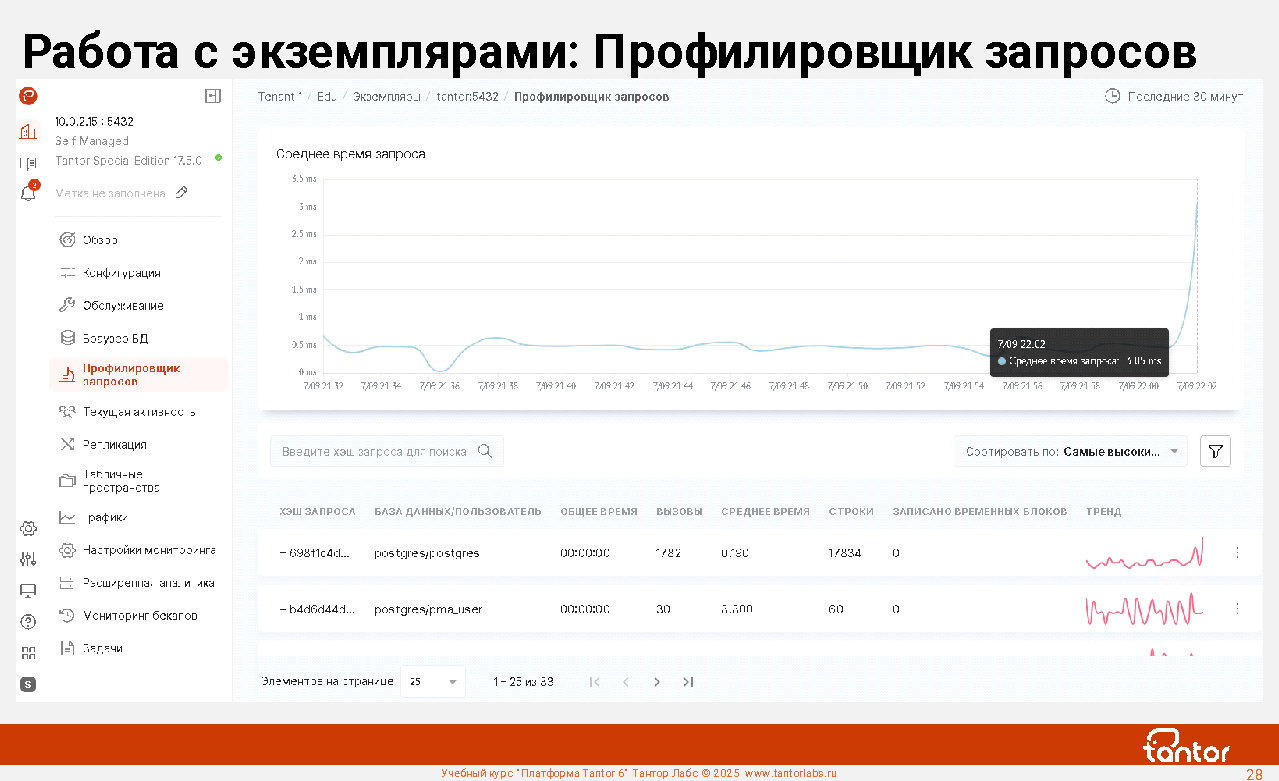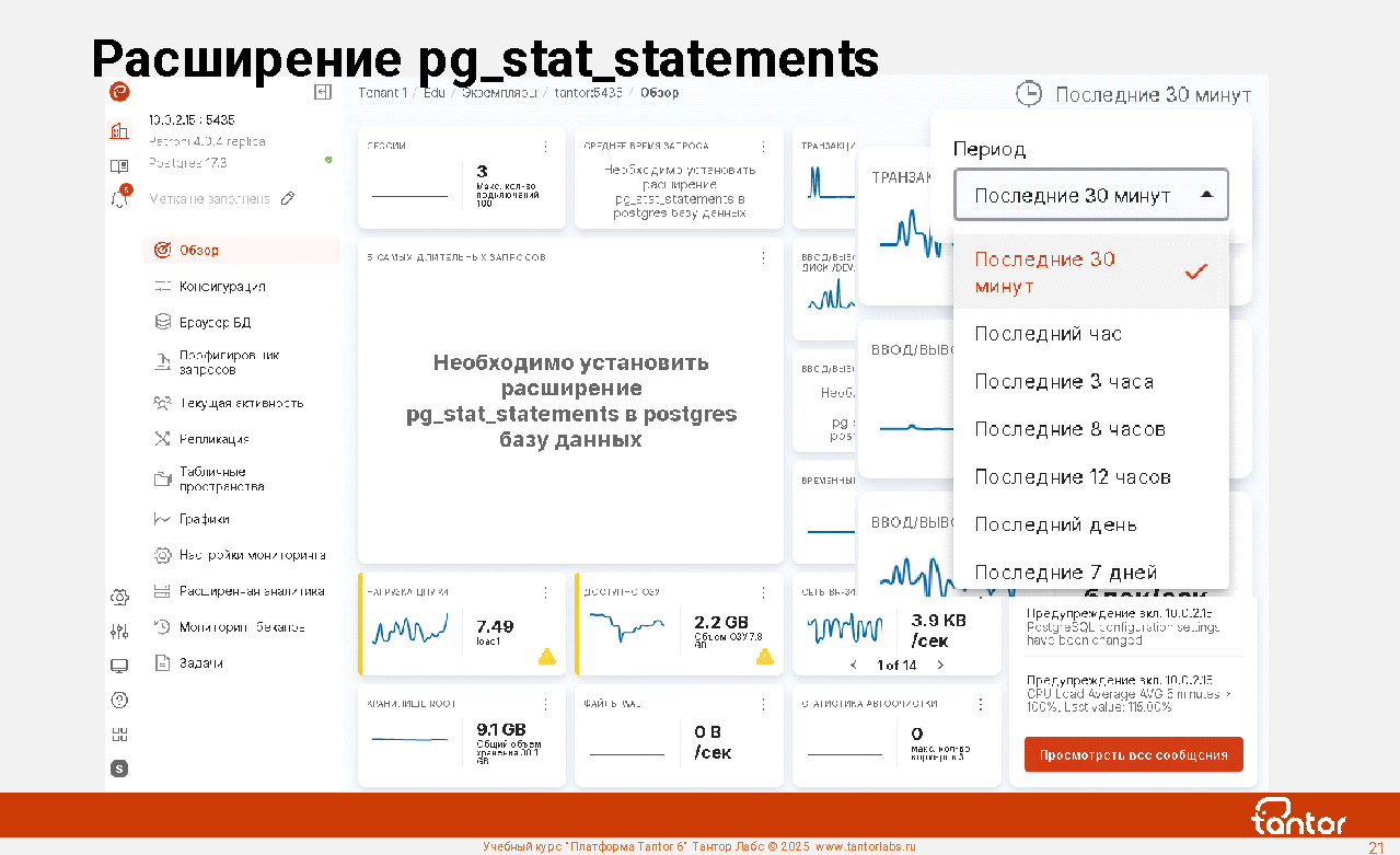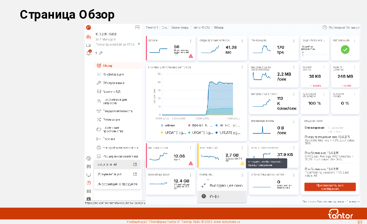 Преимуществом при эксплуатации xData является наличие в составе ПАК удобной графической системы мониторинга работы СУБД: Платформы Tantor.