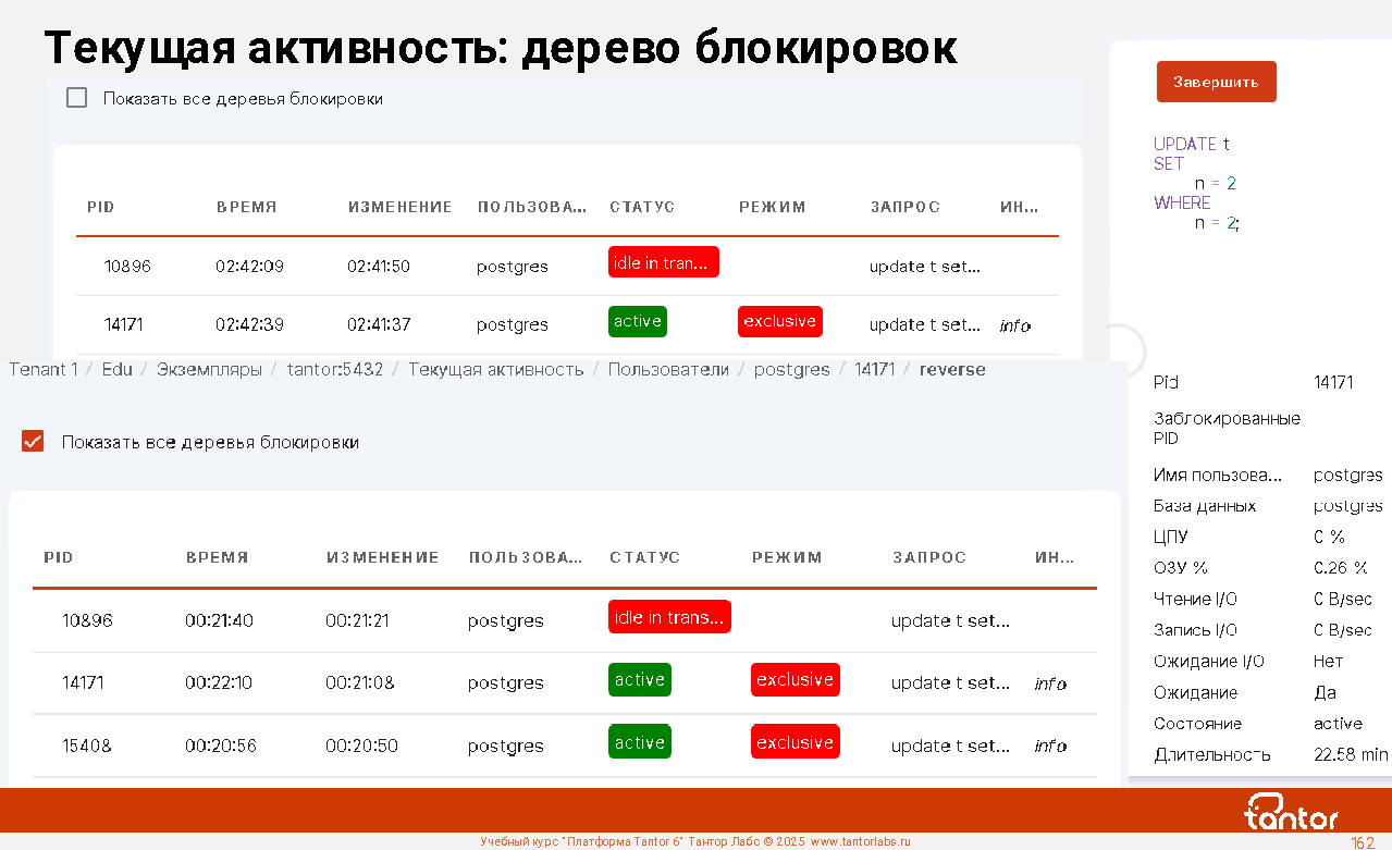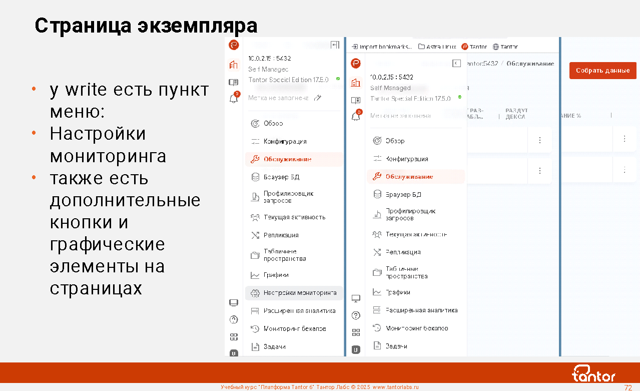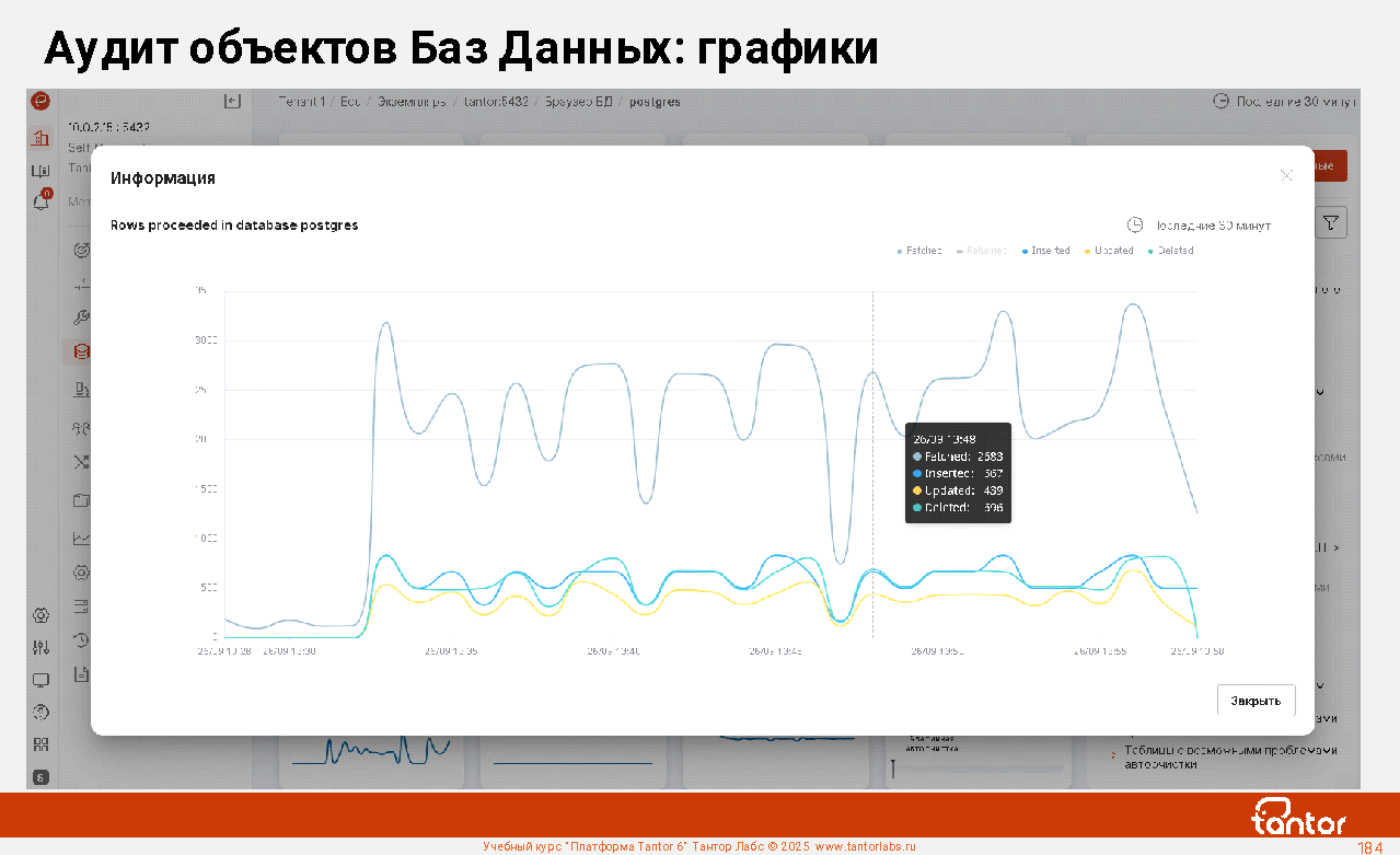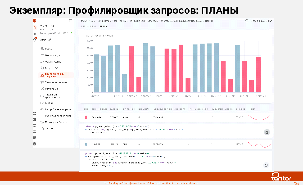 Преимуществом при эксплуатации xData является наличие в составе ПАК удобной графической системы мониторинга работы СУБД: Платформы Tantor.