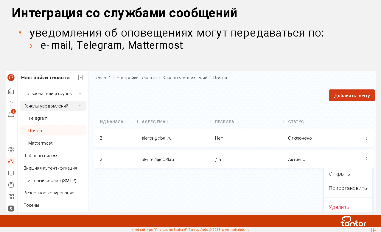 8. Интеграция с почтовыми системами, службами каталогов, мессенджерами, Prometeus, Grafana