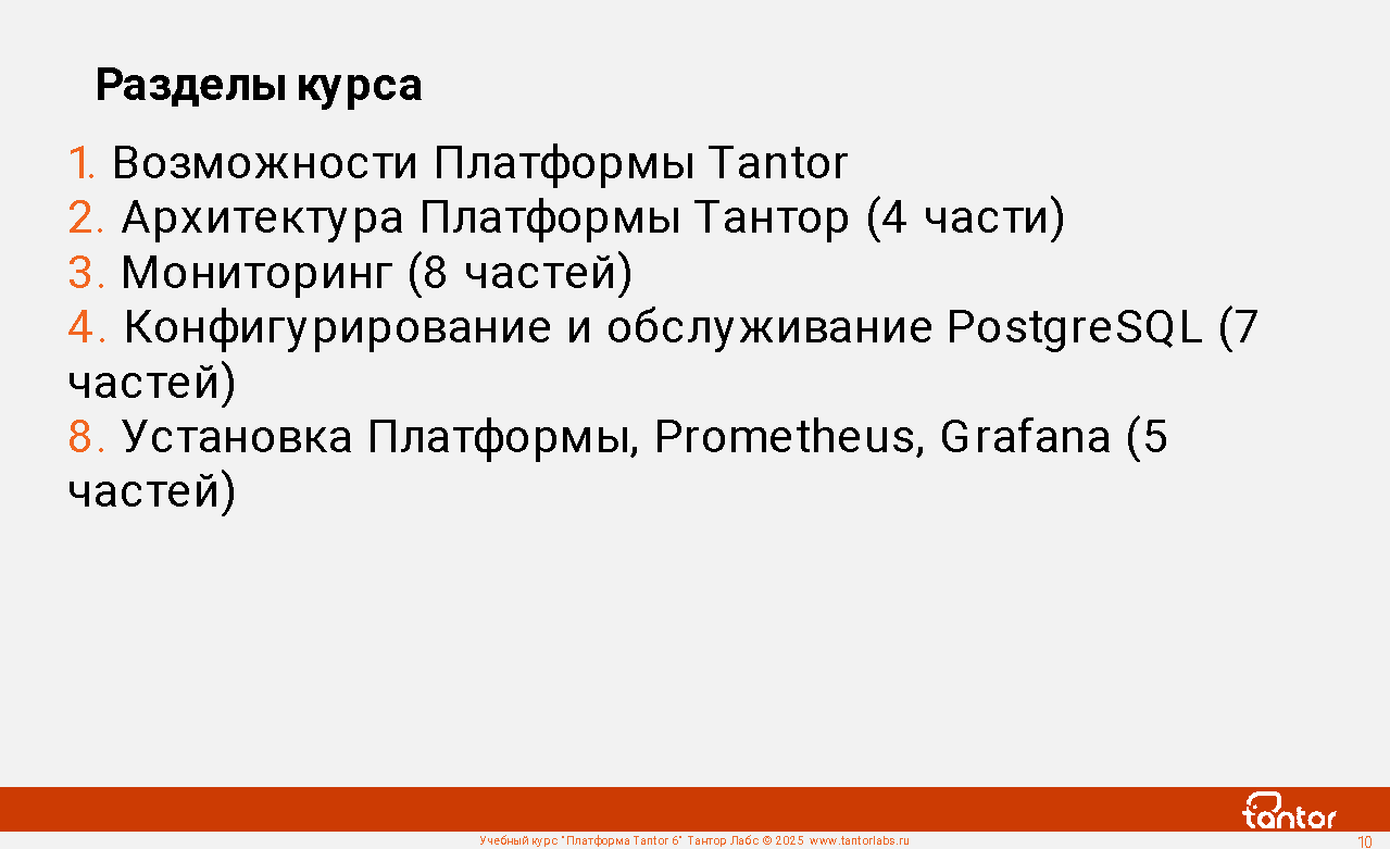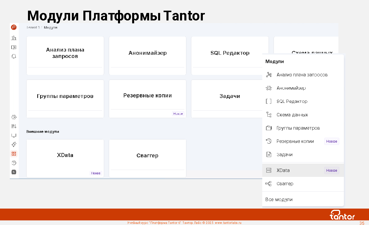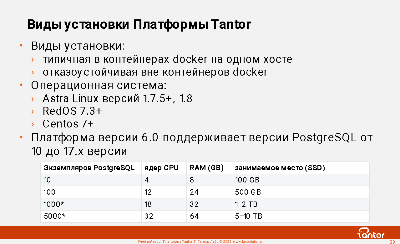 В курсе будут рассмотрены возможности Платформы Tantor.
