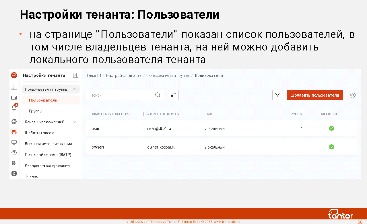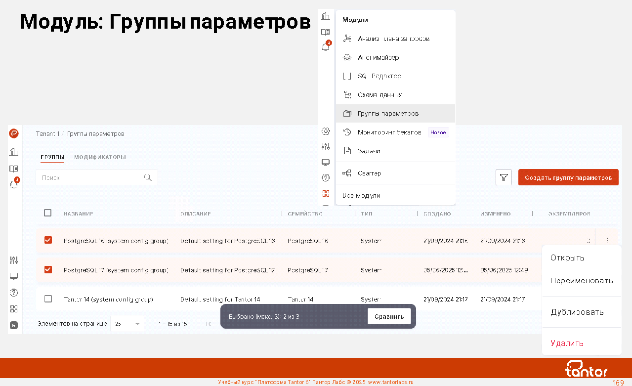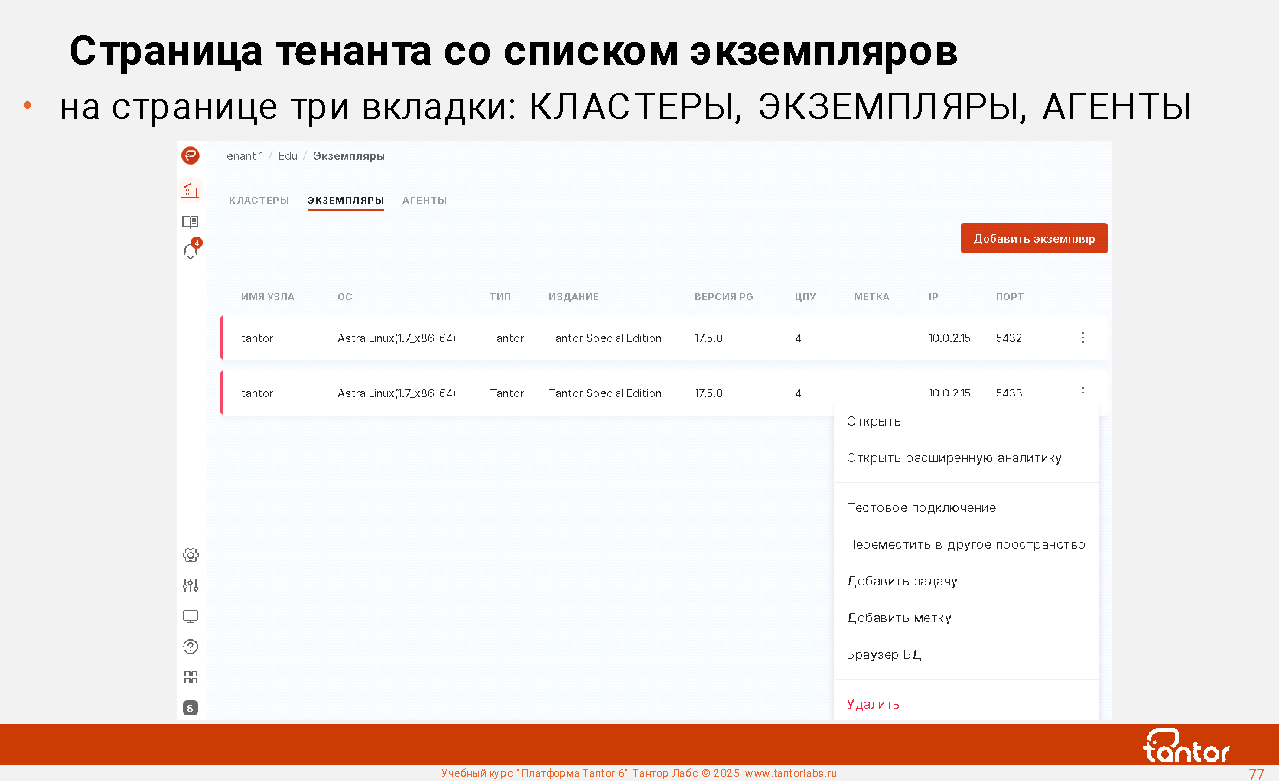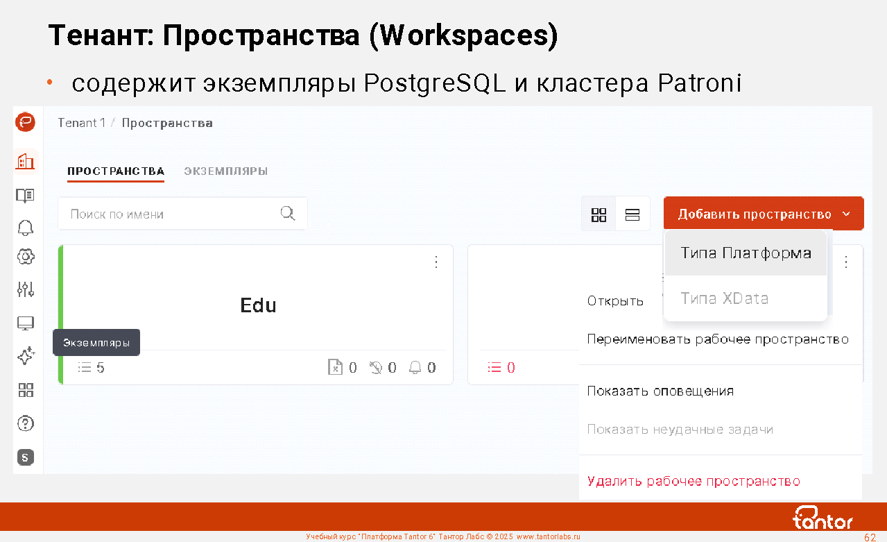 В курсе будут рассмотрены возможности Платформы Tantor.