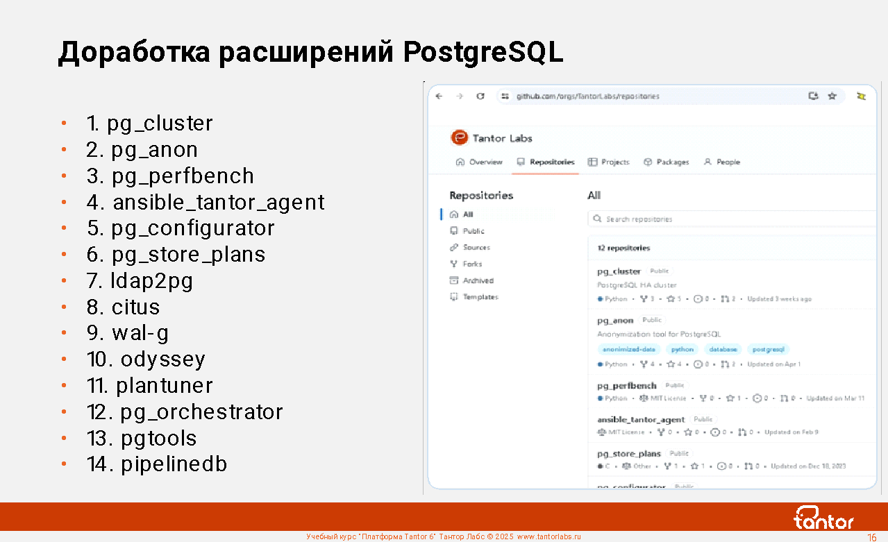 Репозитории расширений: https://github.com/orgs/TantorLabs