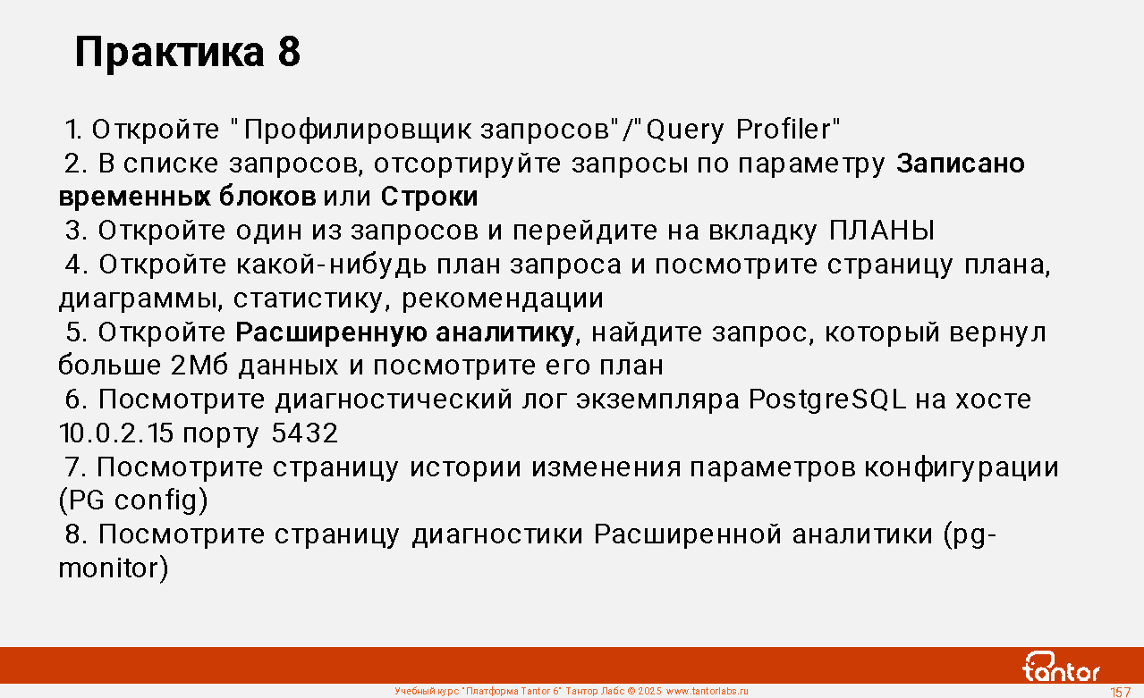 Для успешного прохождения курса достаточно опыта администрирования любой СУБД семейства PostgreSQL или знаний в объеме курса "Tantor: Администрирование PostgreSQL".