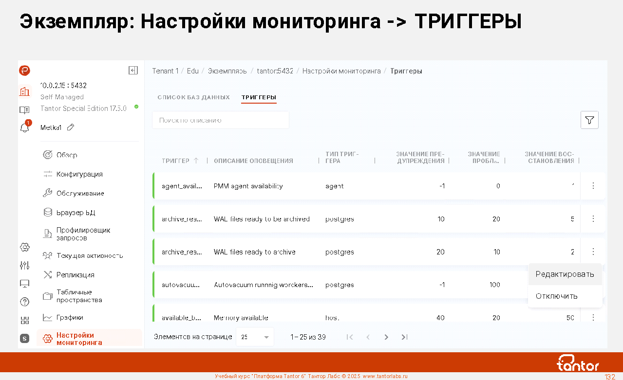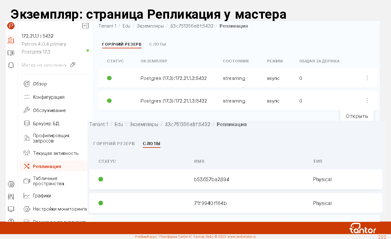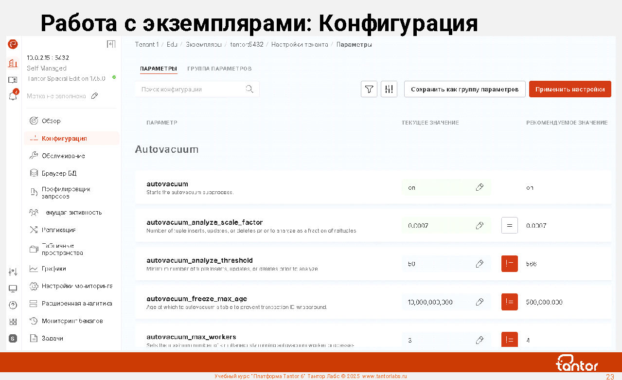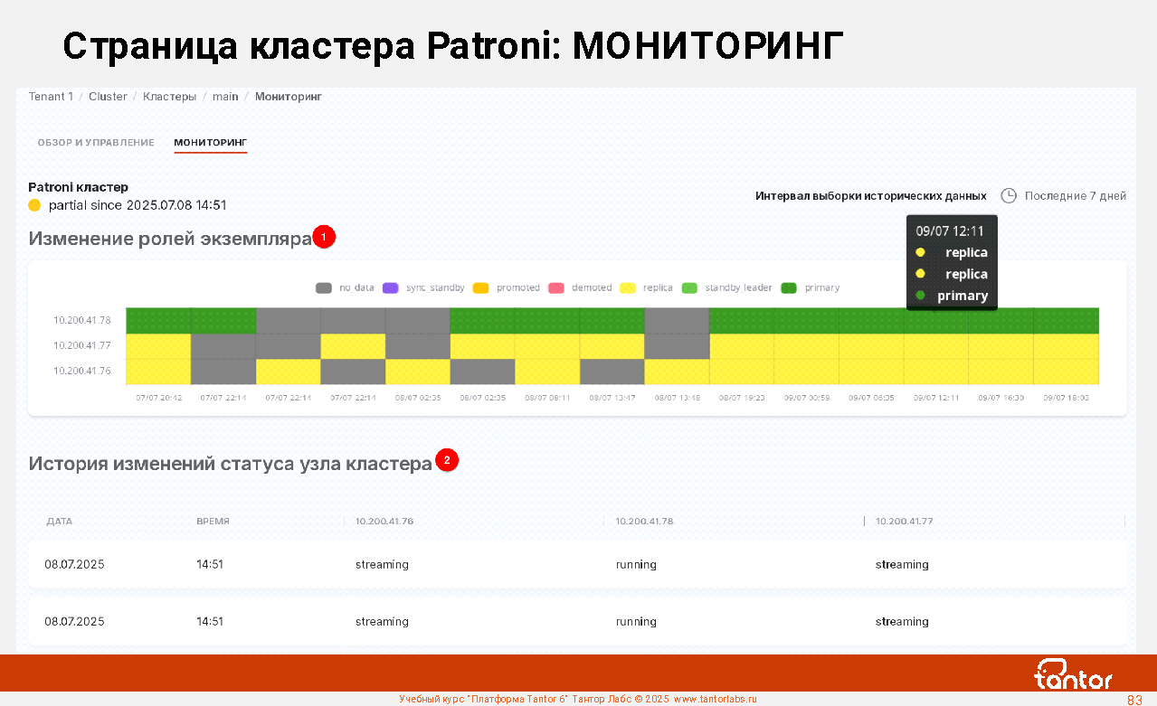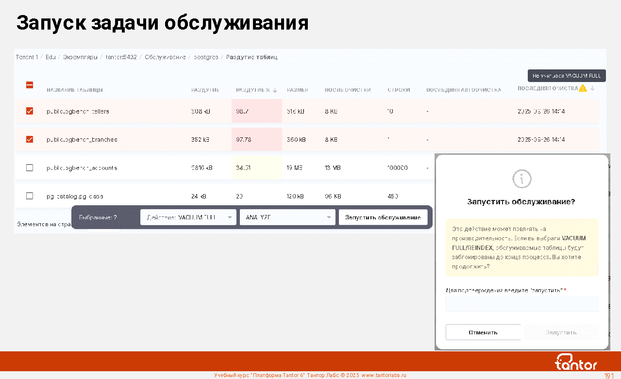 Платформа Tantor - программное обеспечение для управления и мониторинга СУБД Tantor Postgres, любых форков PostgreSQL, кластеров Patroni. Позволяет удобно управлять большим числом экземпляров PostgreSQL.
