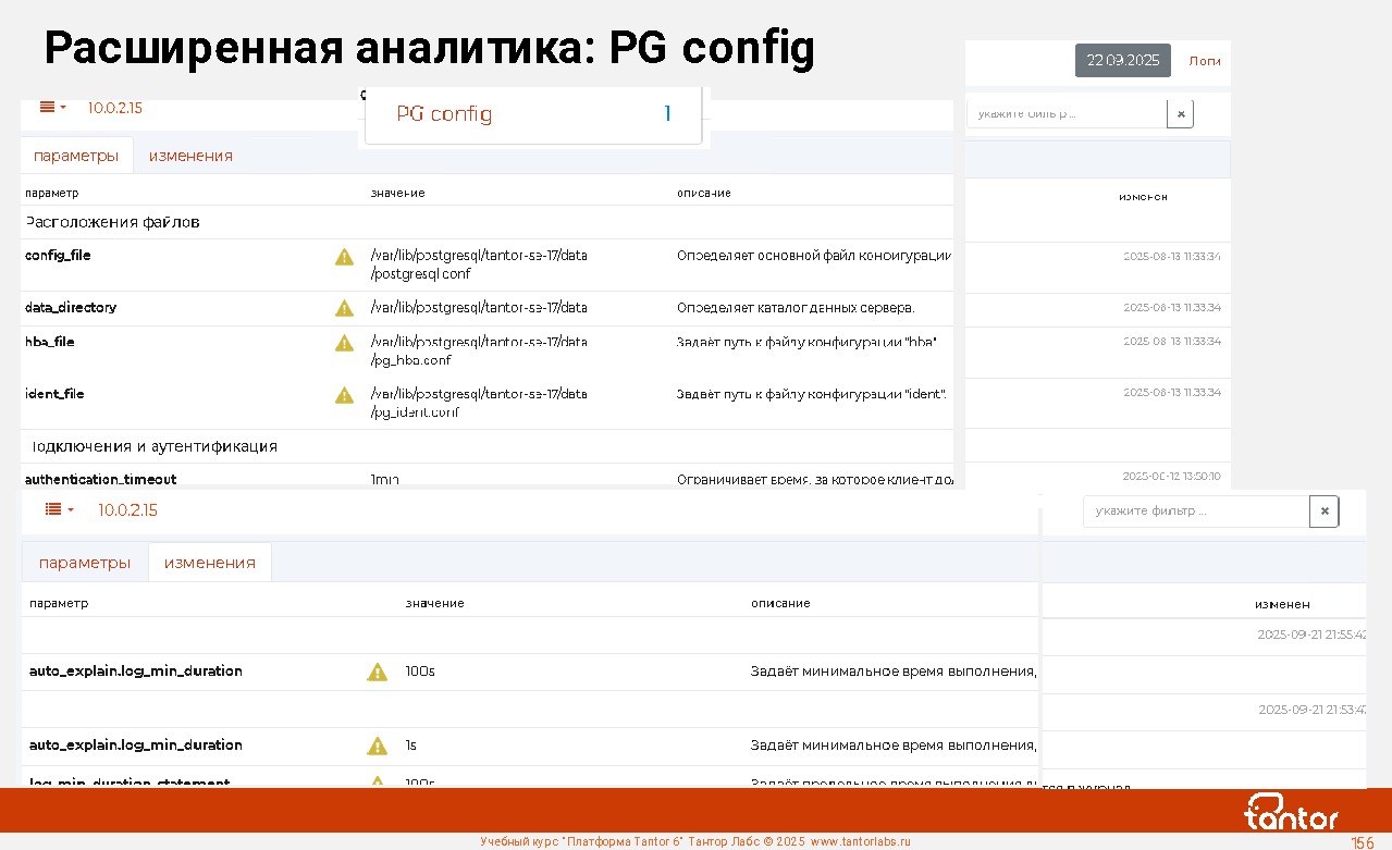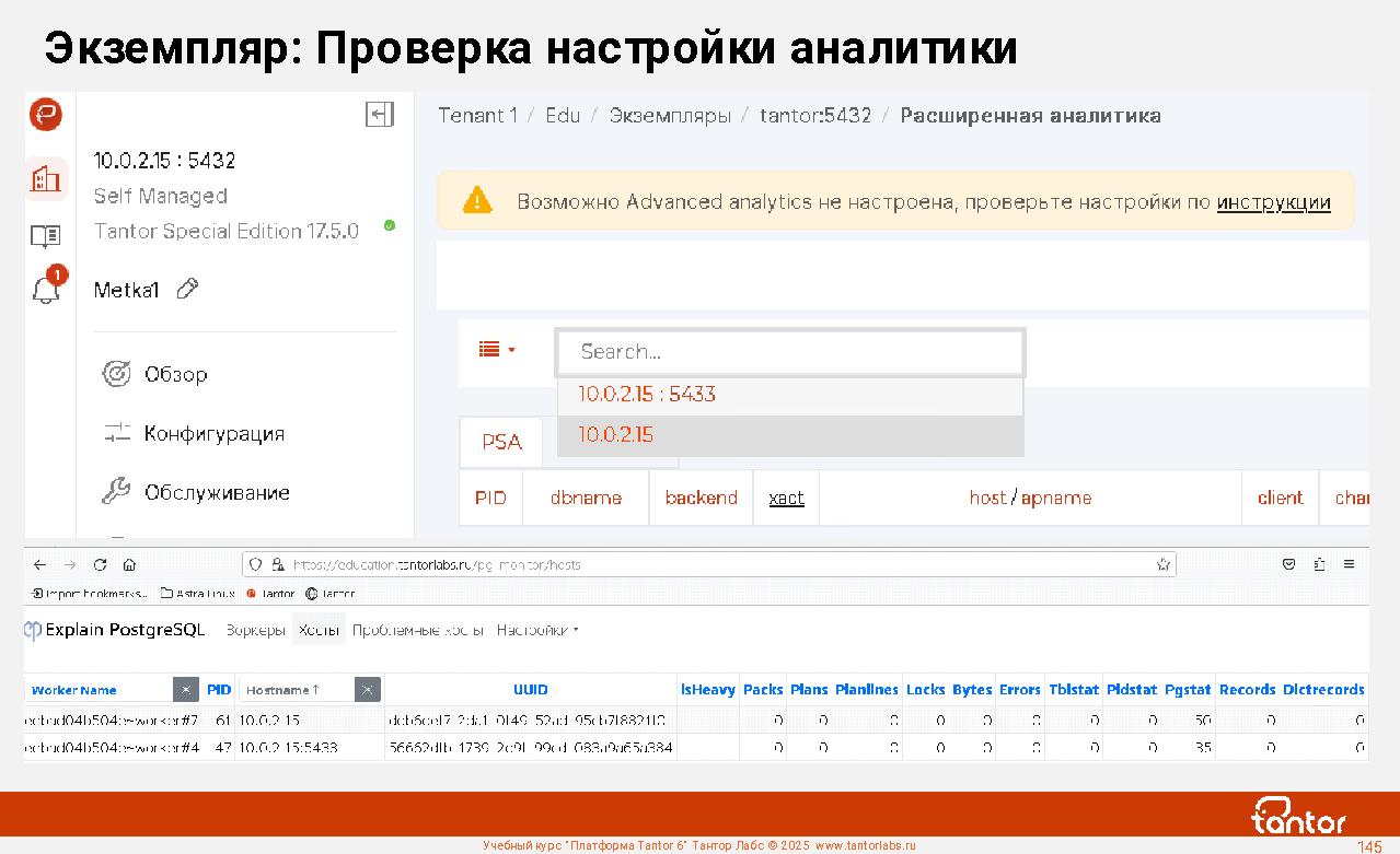 Для Расширенной аналитики нужно конфигурирование кластера PostgreSQL и хоста.