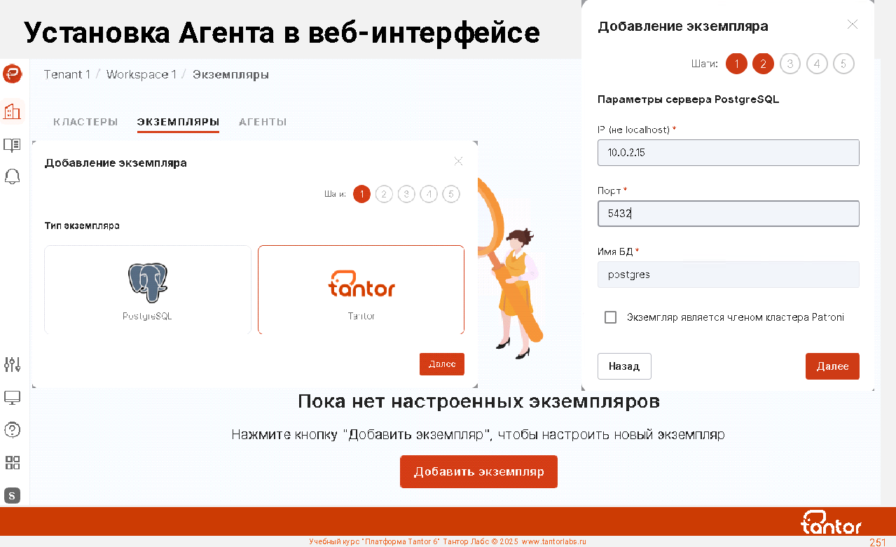 В командной строке можно добавлять экземпляры под управлением Patroni.
