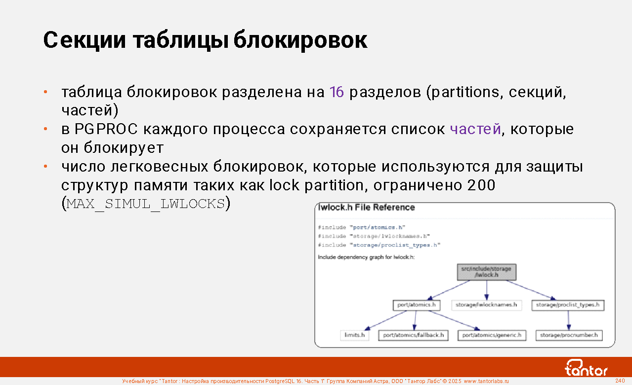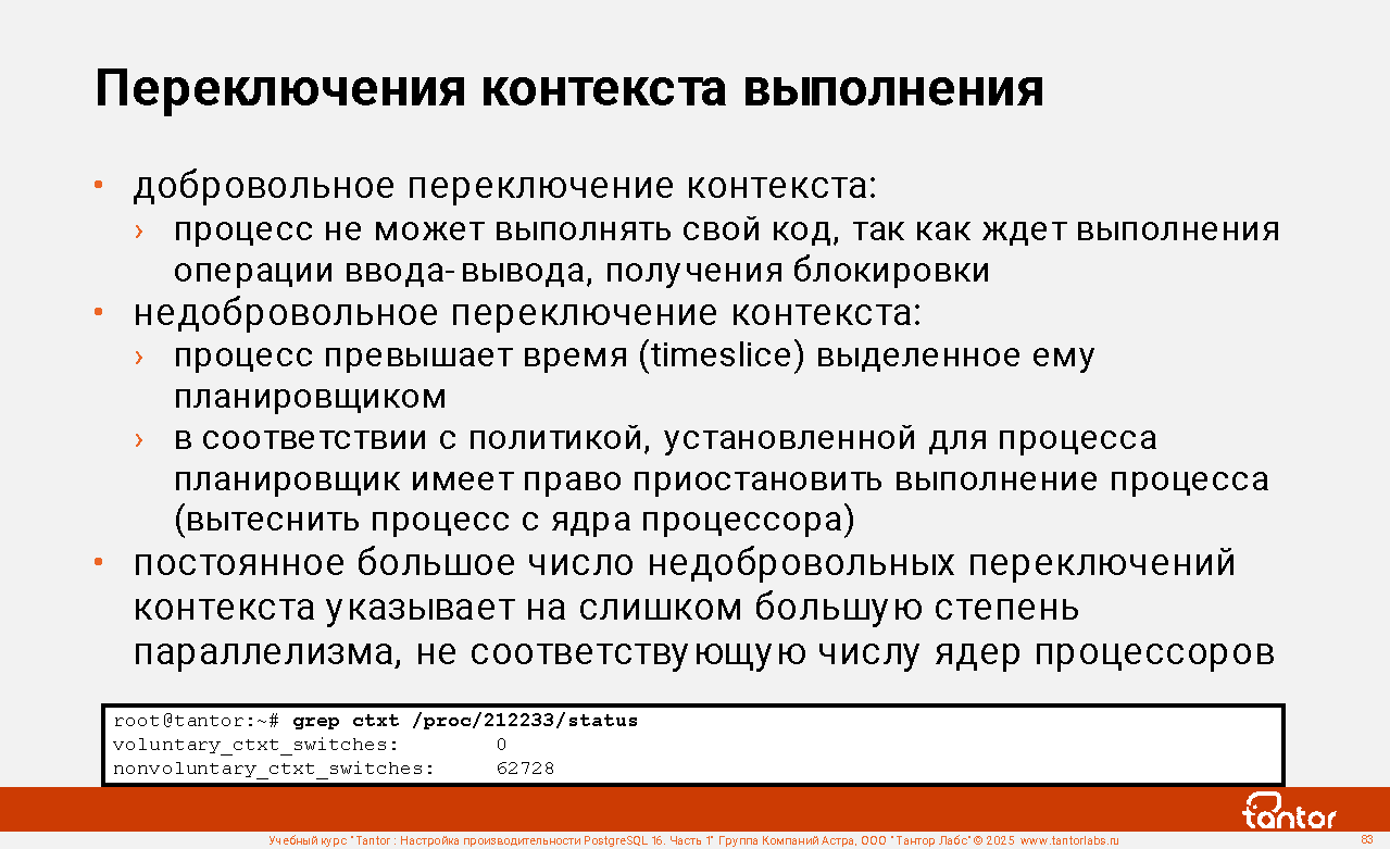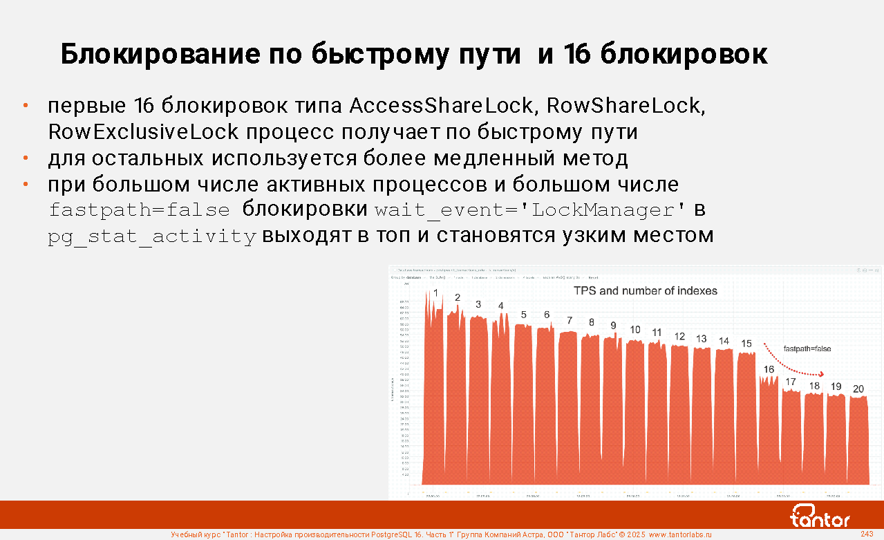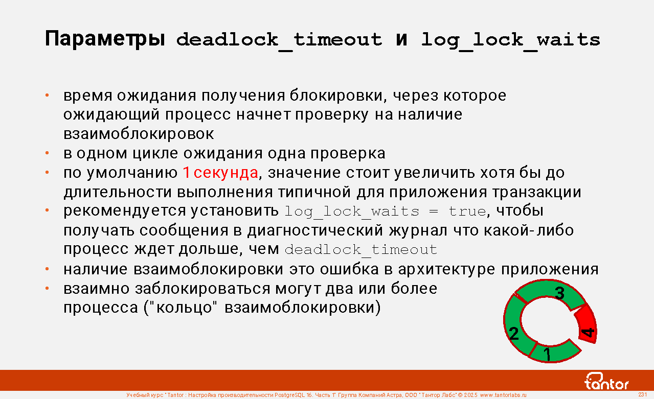 Процессы экземпляра используют ресурсы совместно и узким местом может стать конкуренция за получение доступа к ресурсу (resource starvation). Поэтому отдельно уделяется внимание блокировкам и событиям ожидания получения доступа к ресурсу.