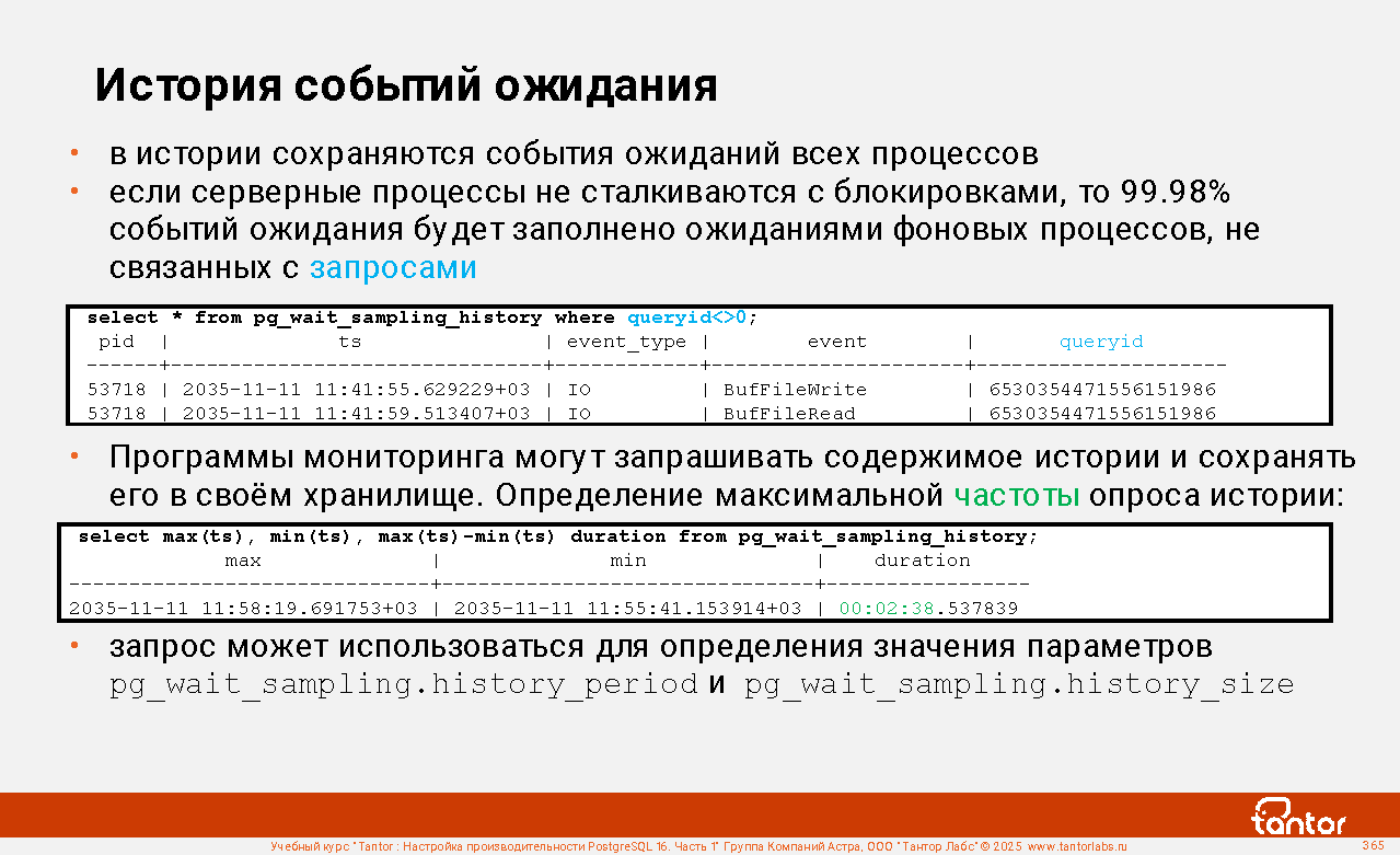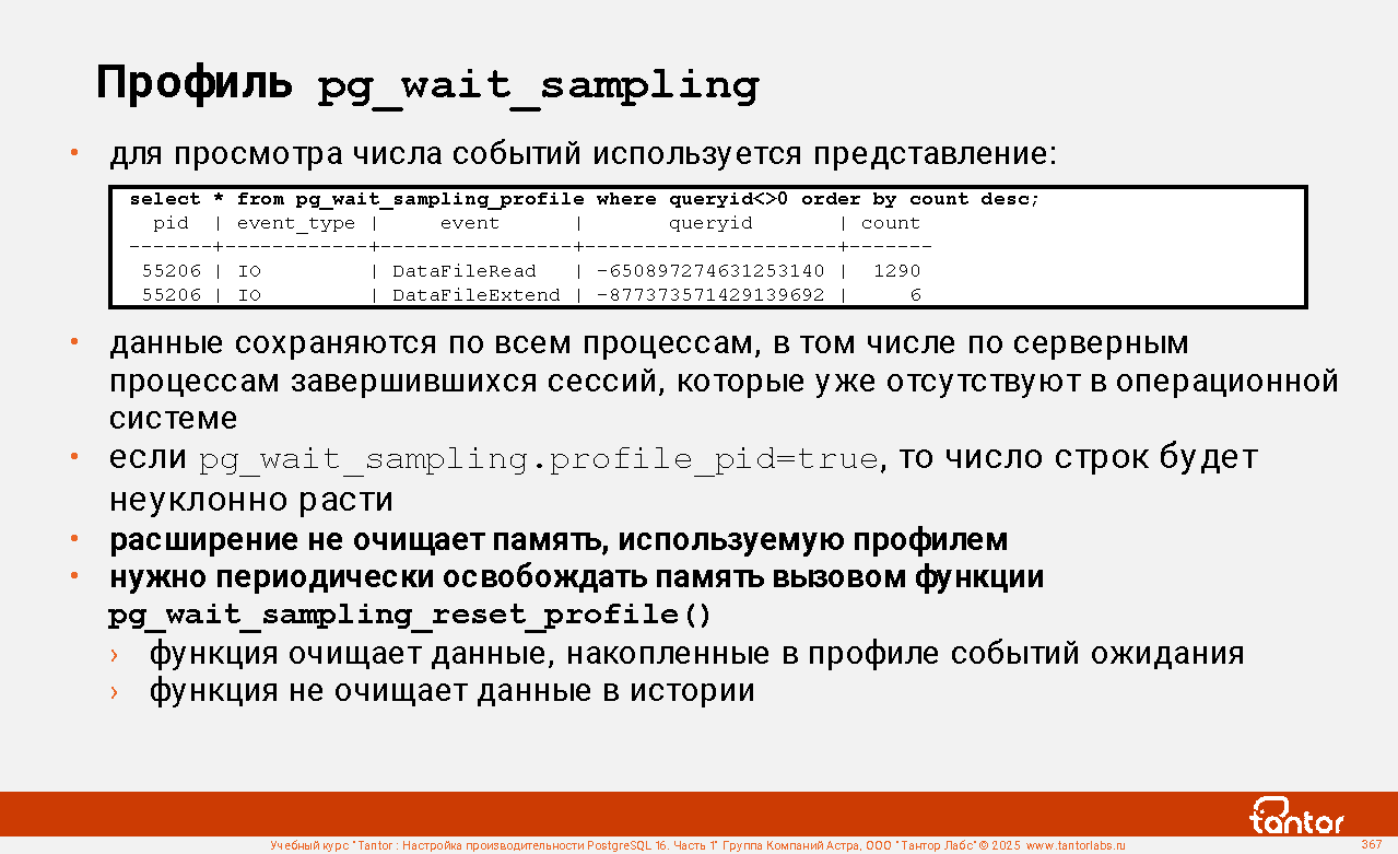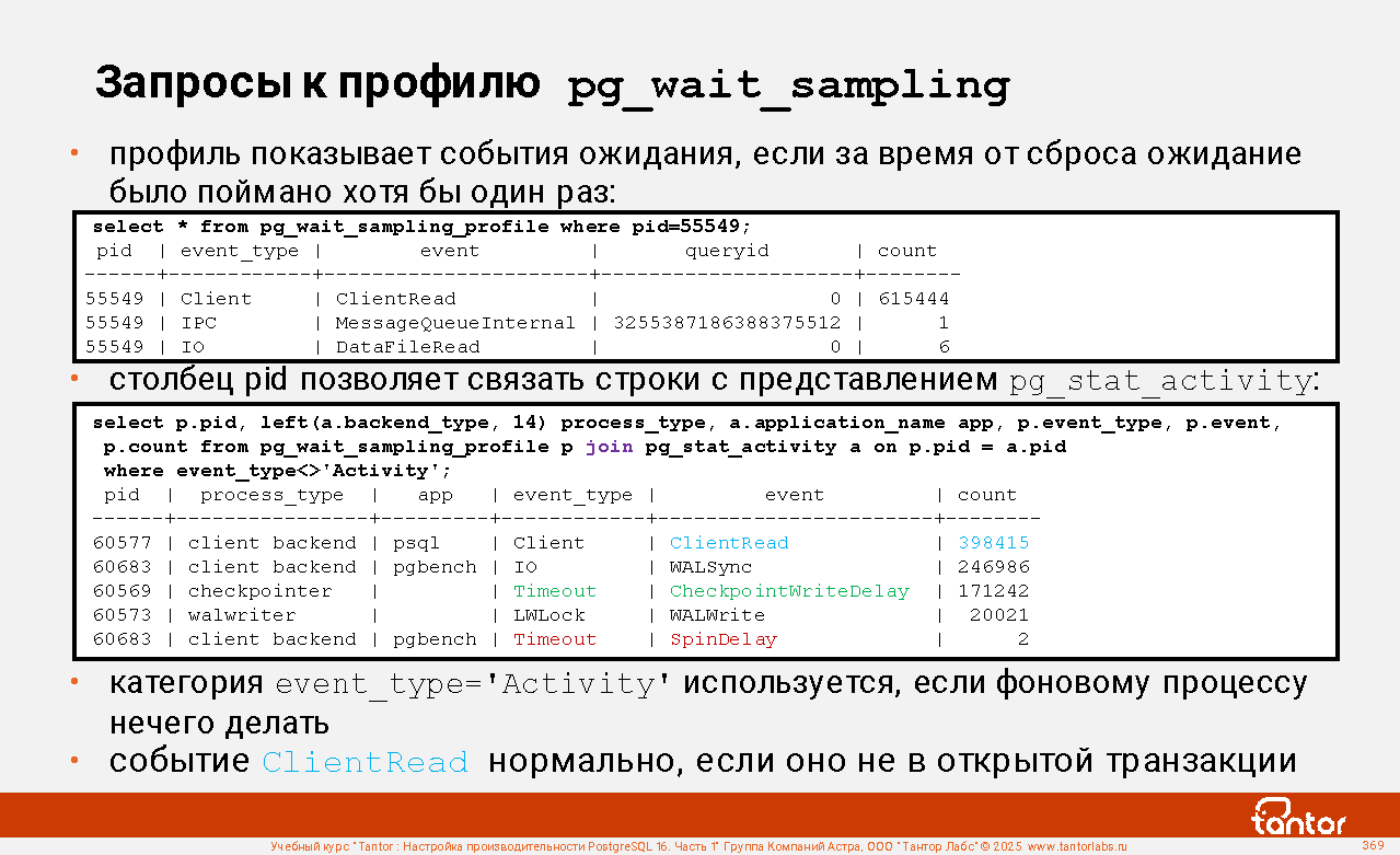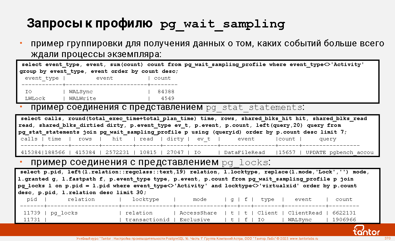 Запросы к профилю pg_wait_sampling (продолжение)