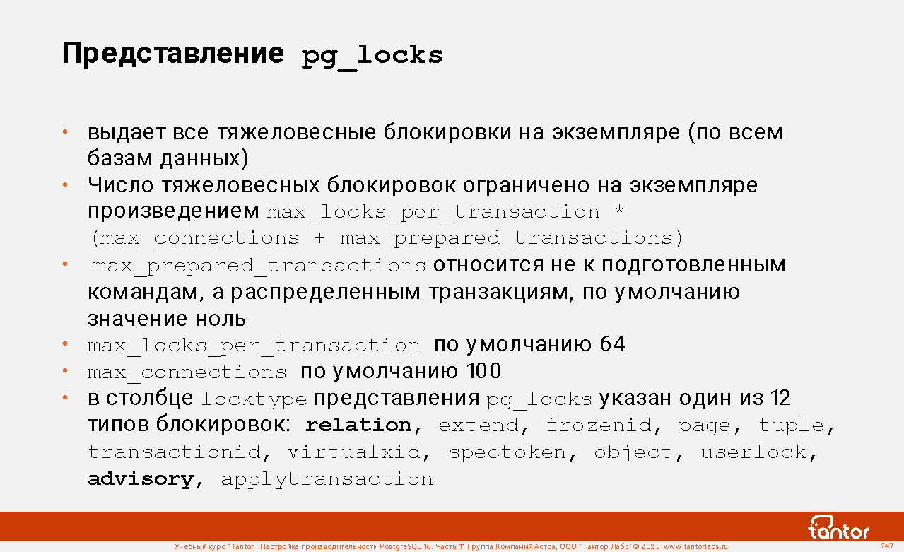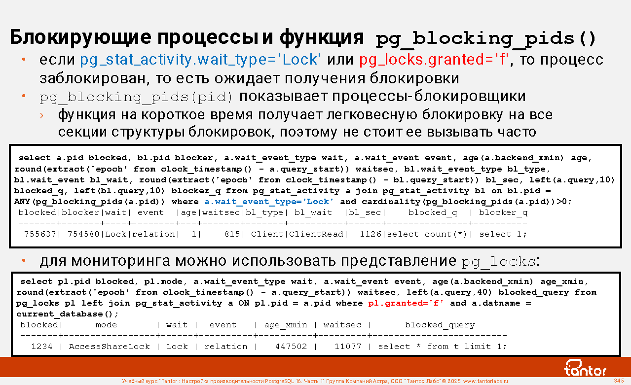 Пример соединения с представлением pg_locks: