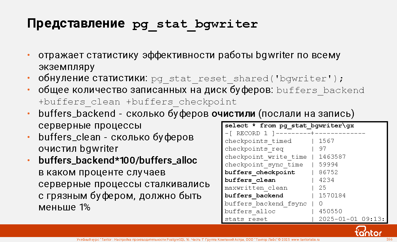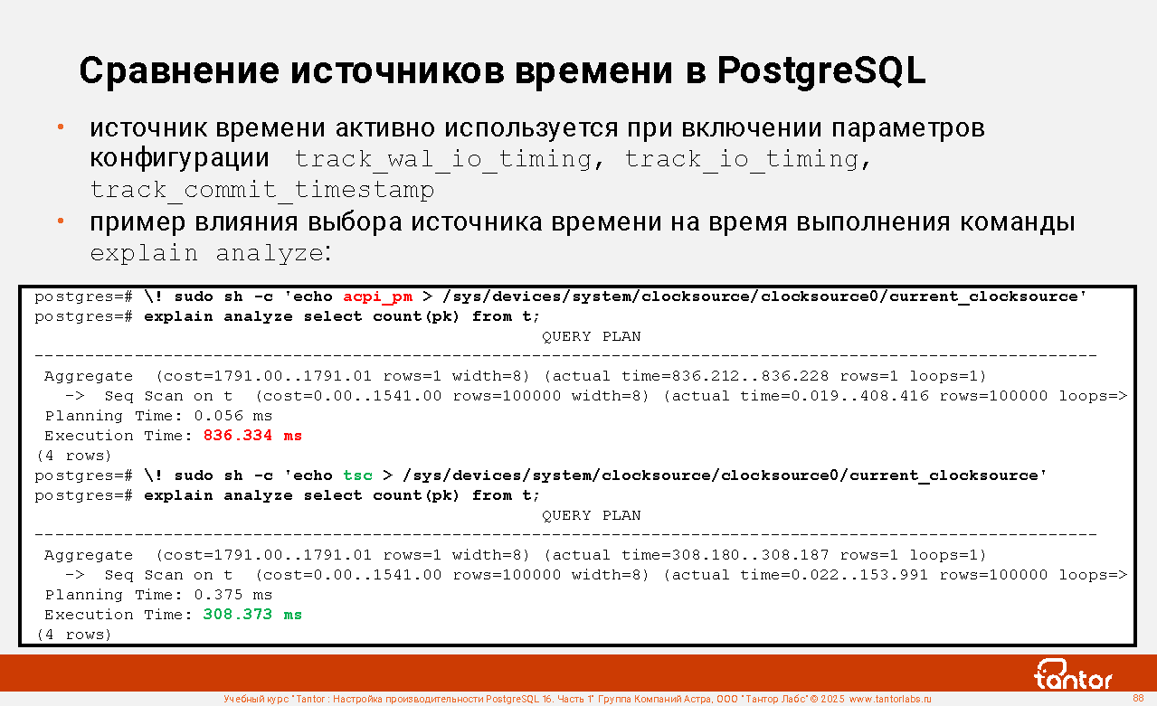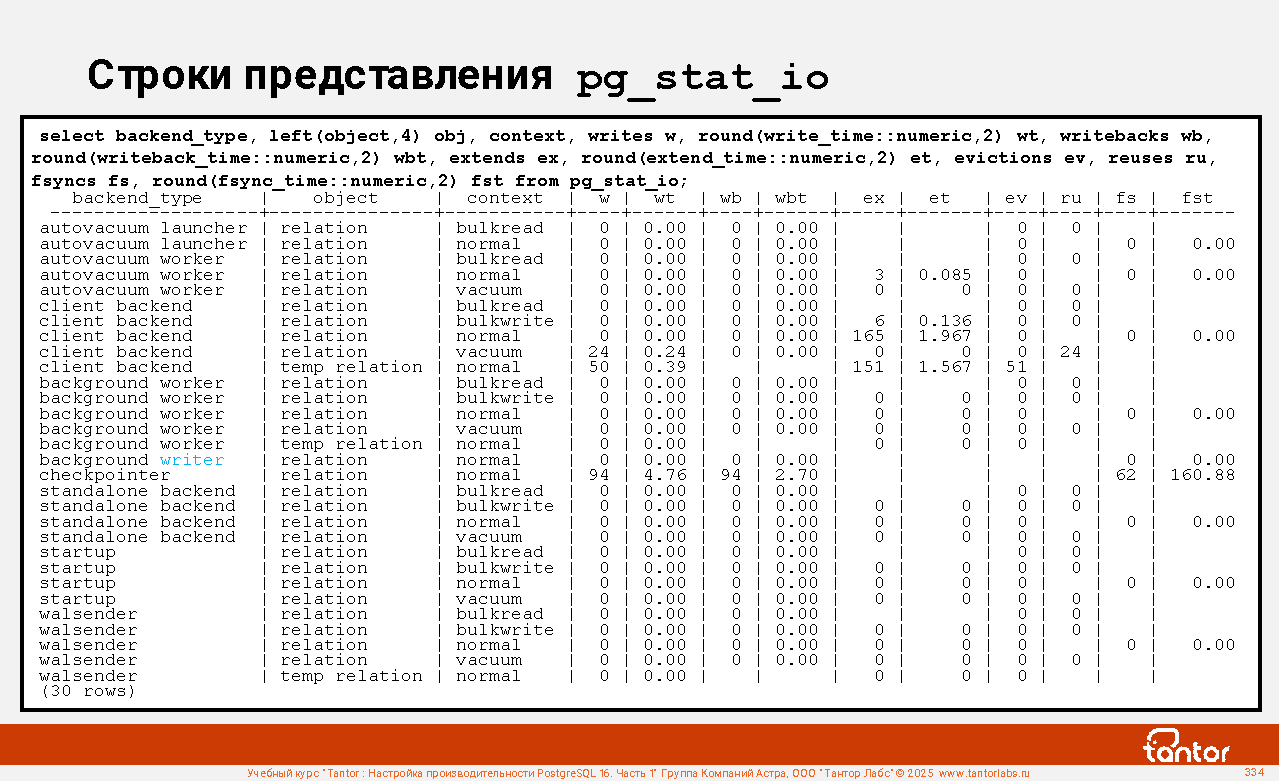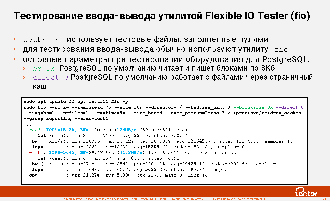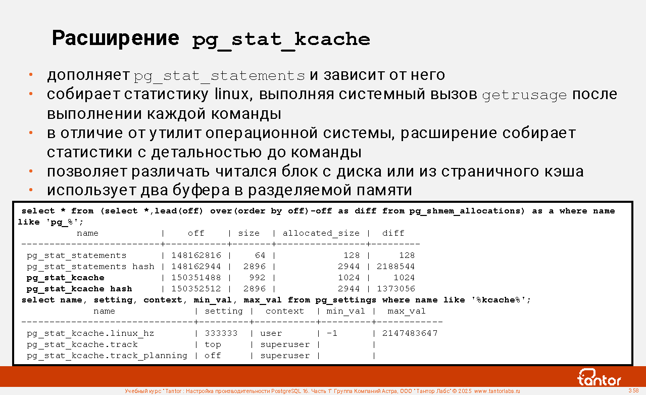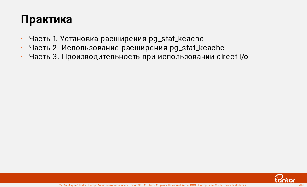 postgres@tantor:~# echo 3 | sudo tee /proc/sys/vm/drop_caches