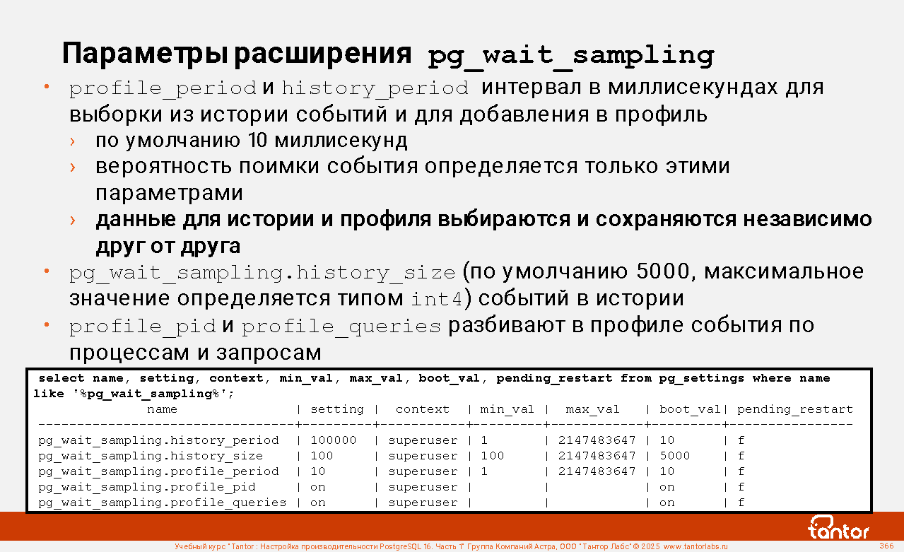Запросы к профилю pg_wait_sampling