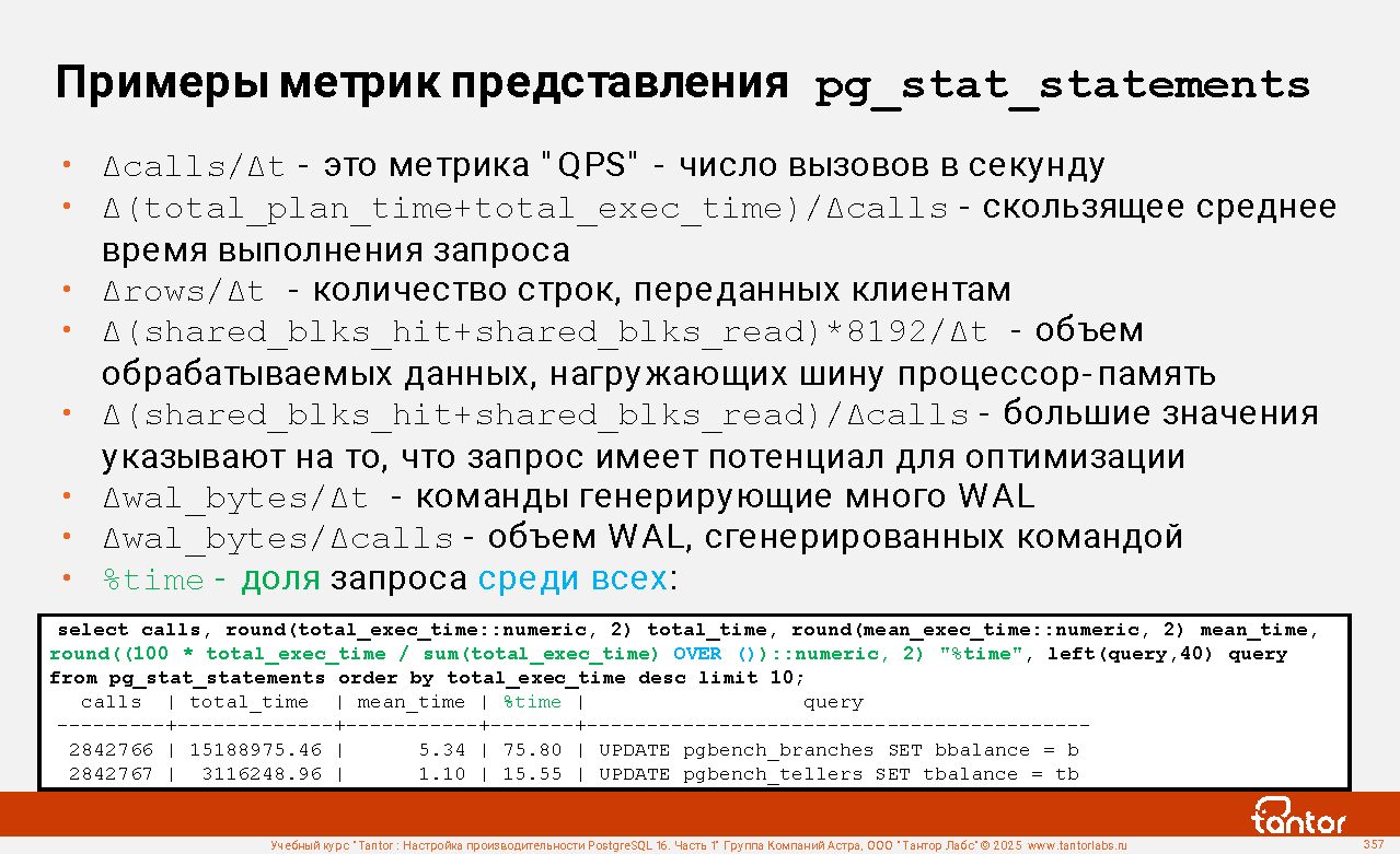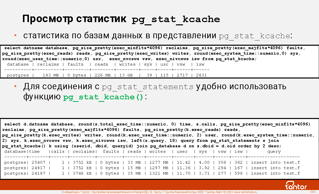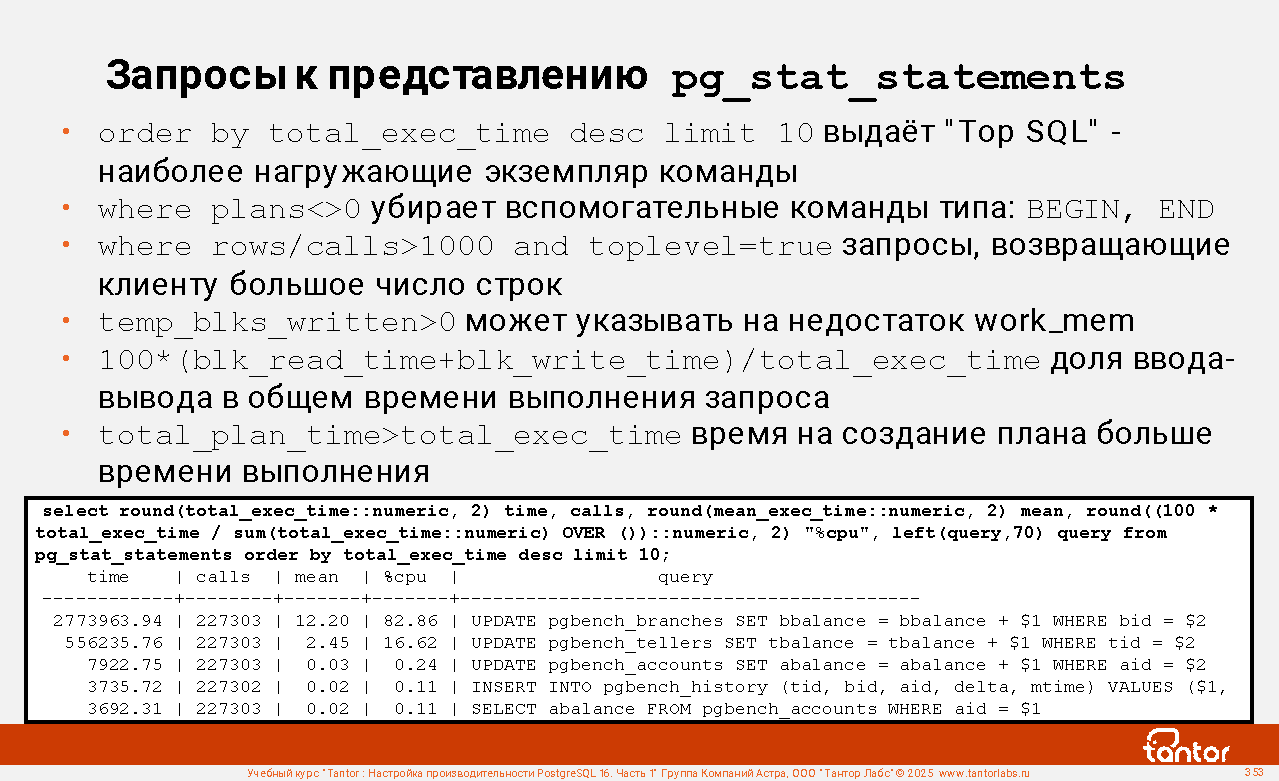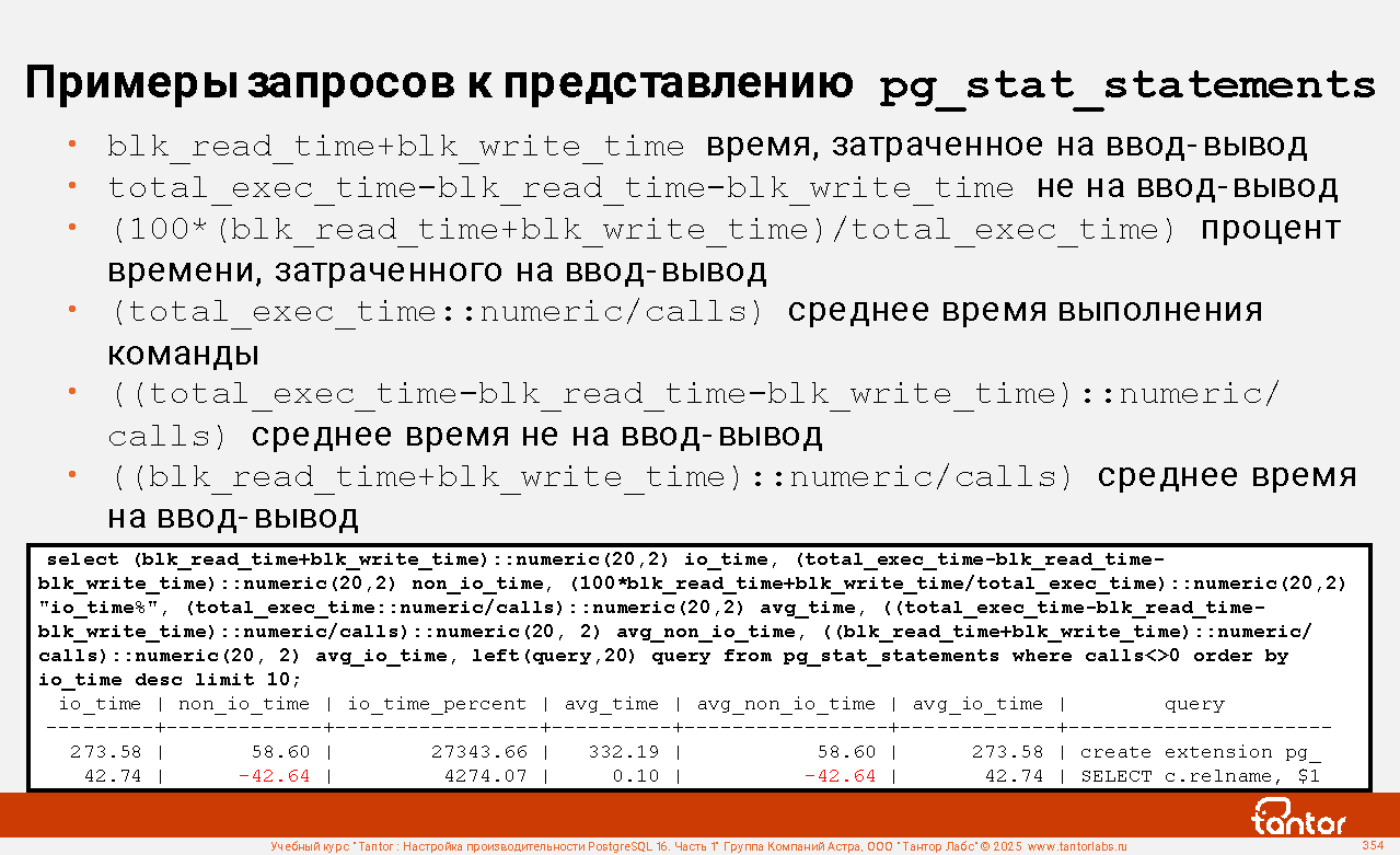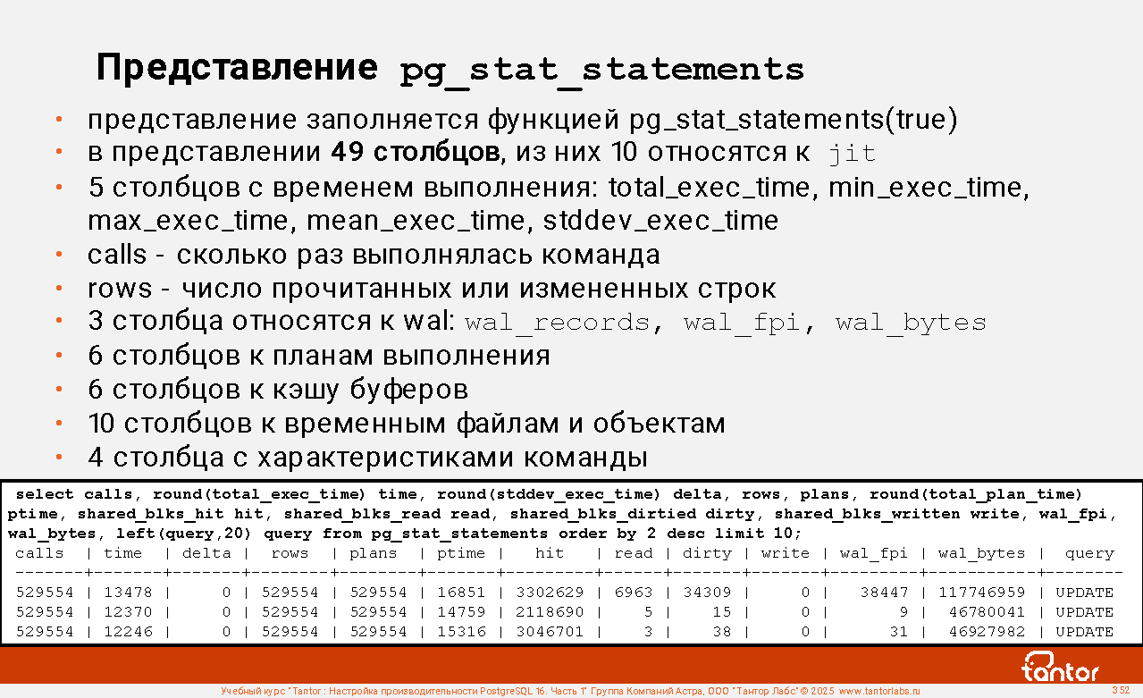 Пример соединения с представлением pg_stat_statements: