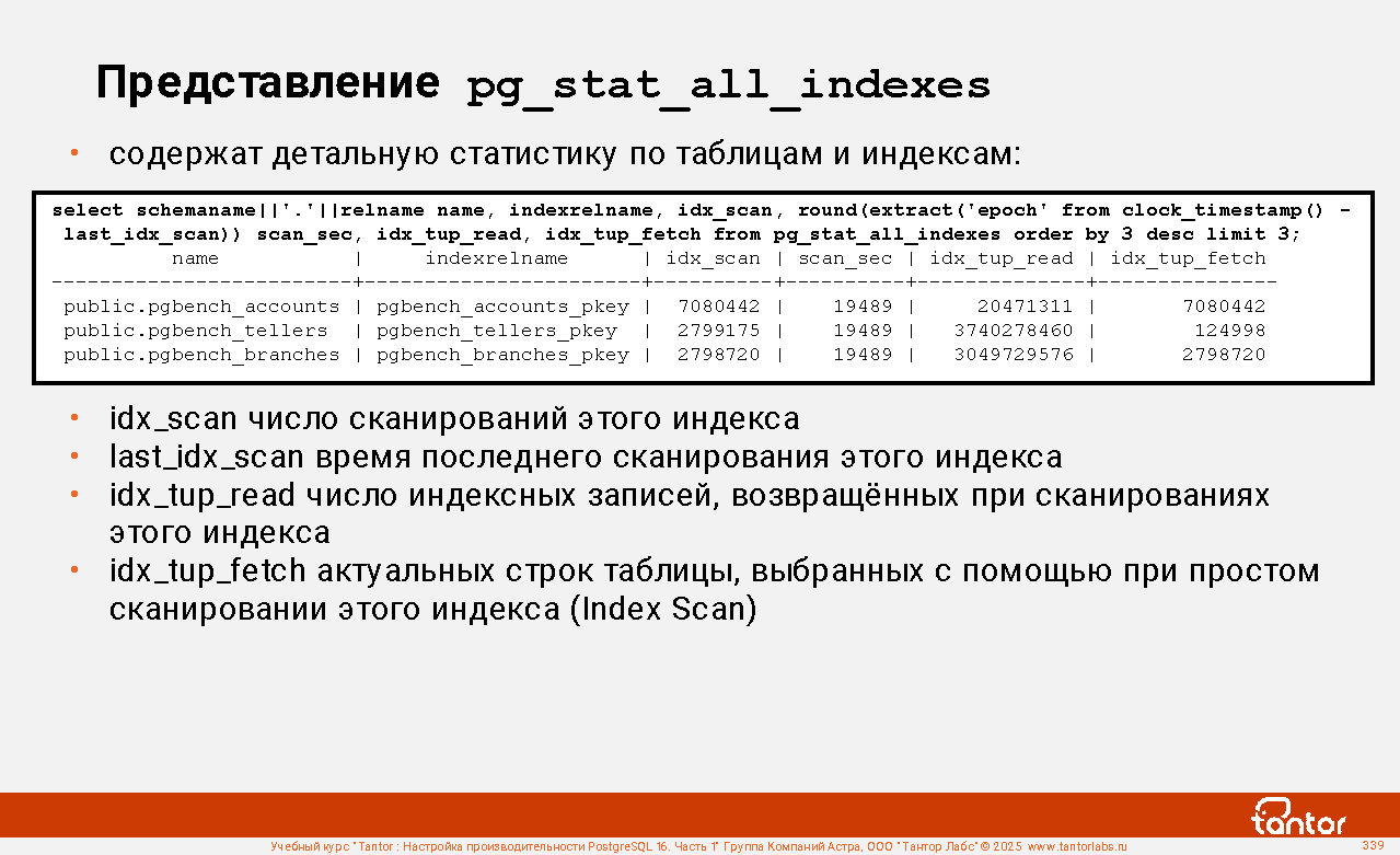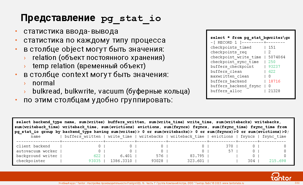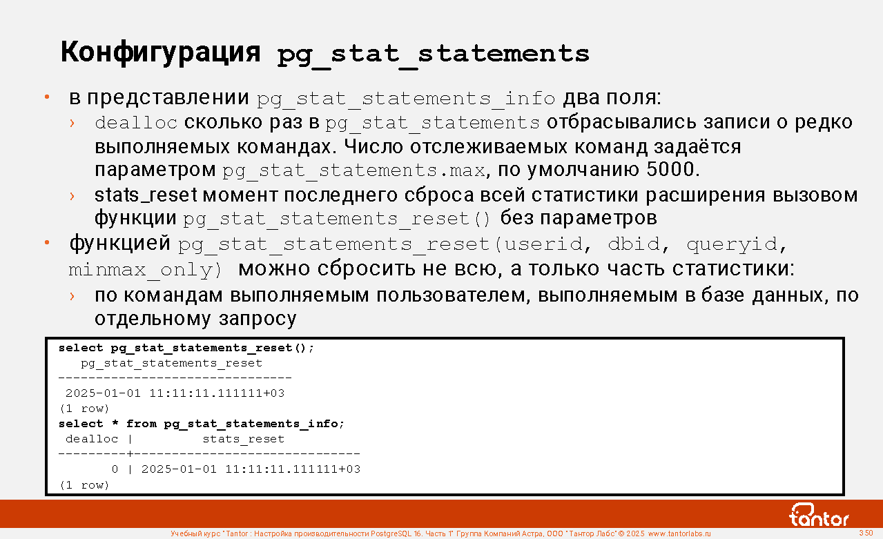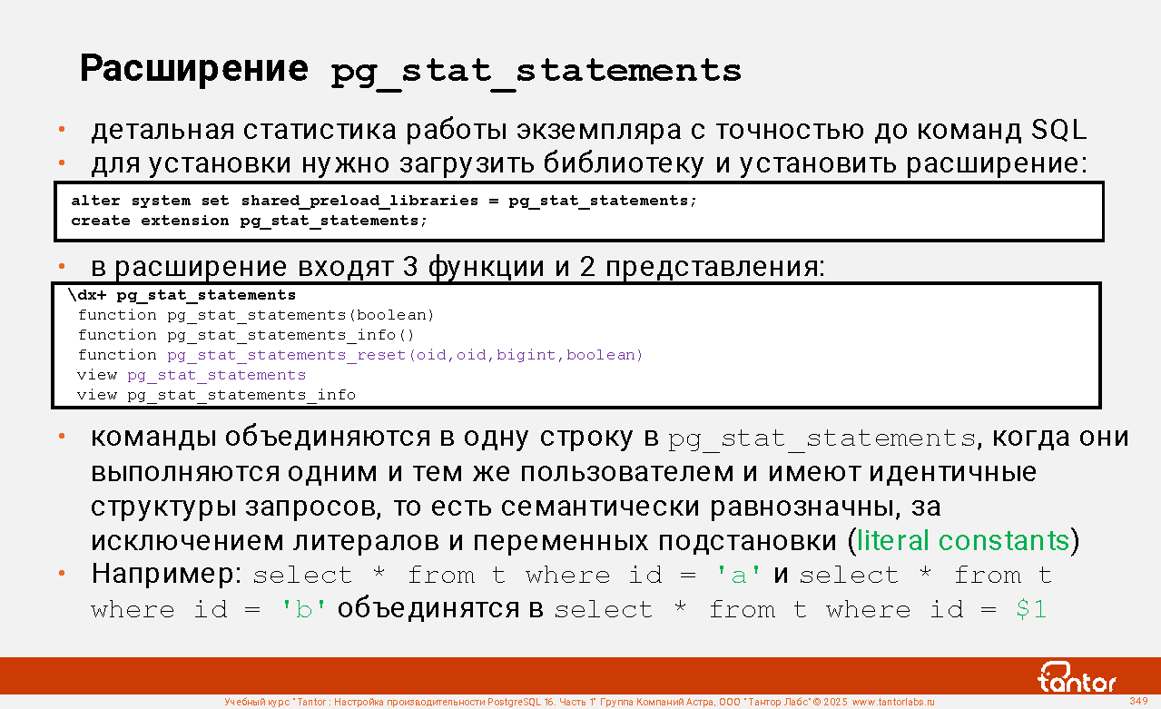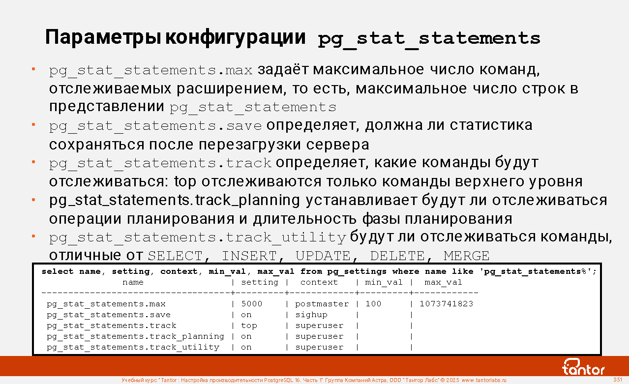Пример соединения с представлением pg_stat_statements: