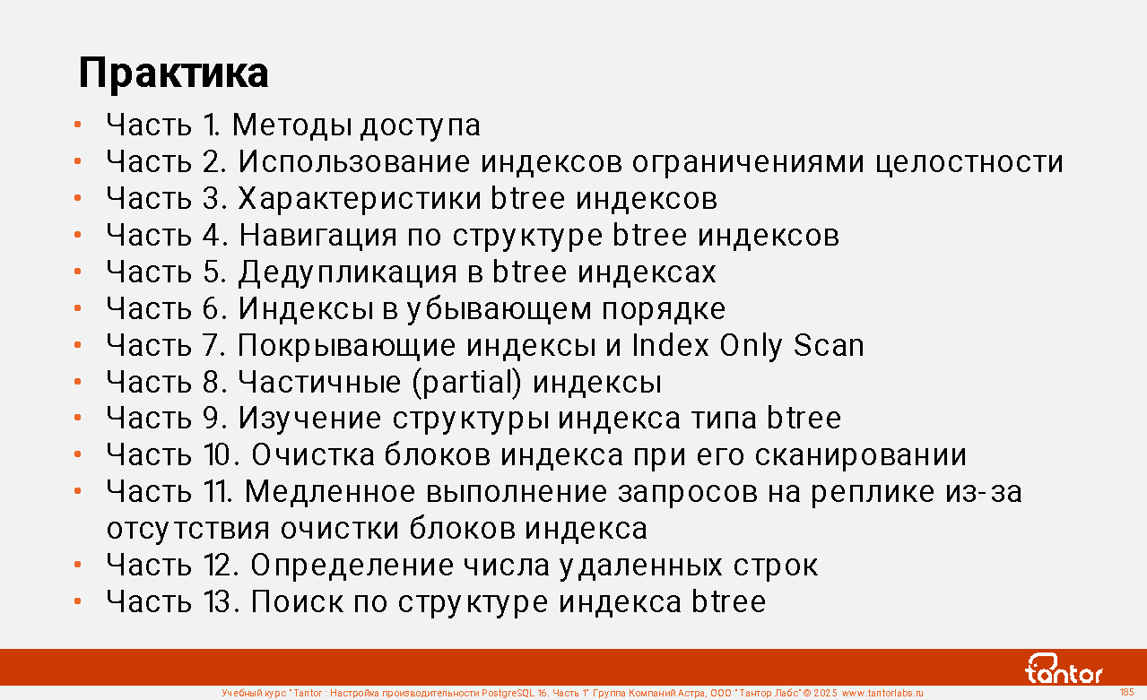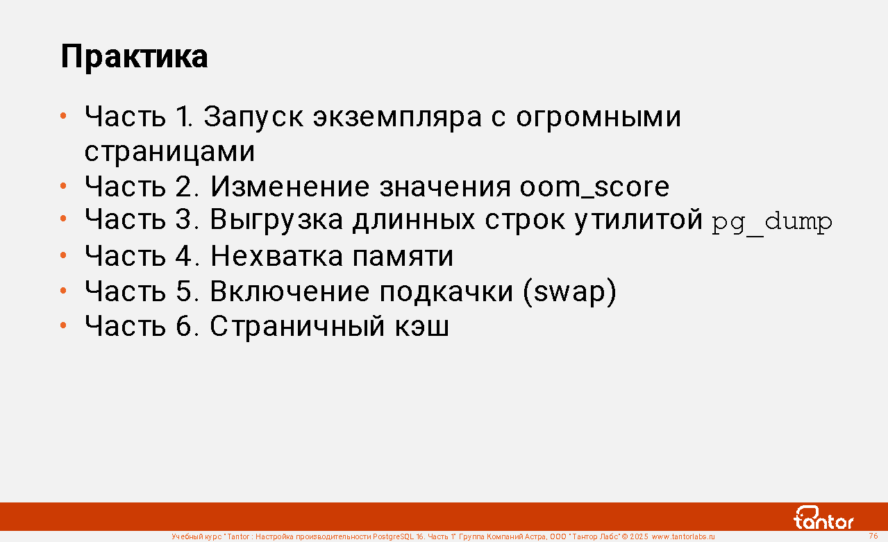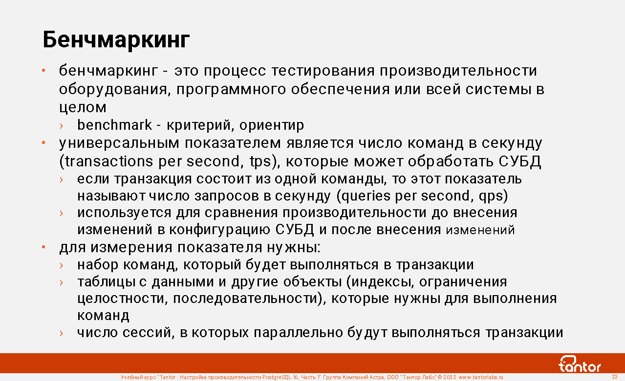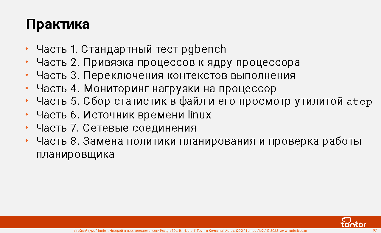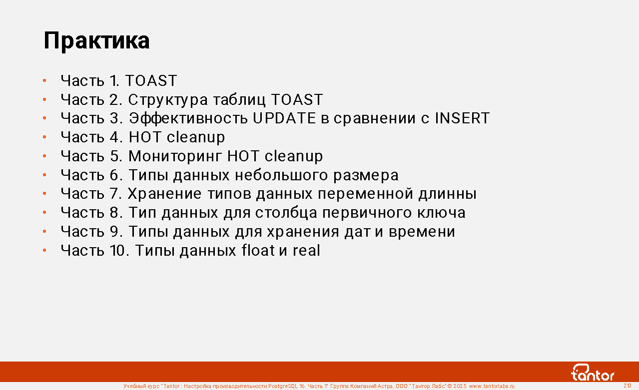 Курс предназначен для администраторов и разработчиков, в задачи которых входит настройка производительности работы приложений с СУБД PostgreSQL.