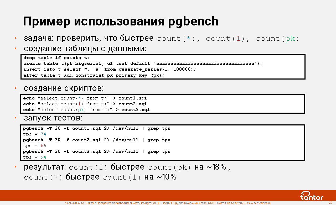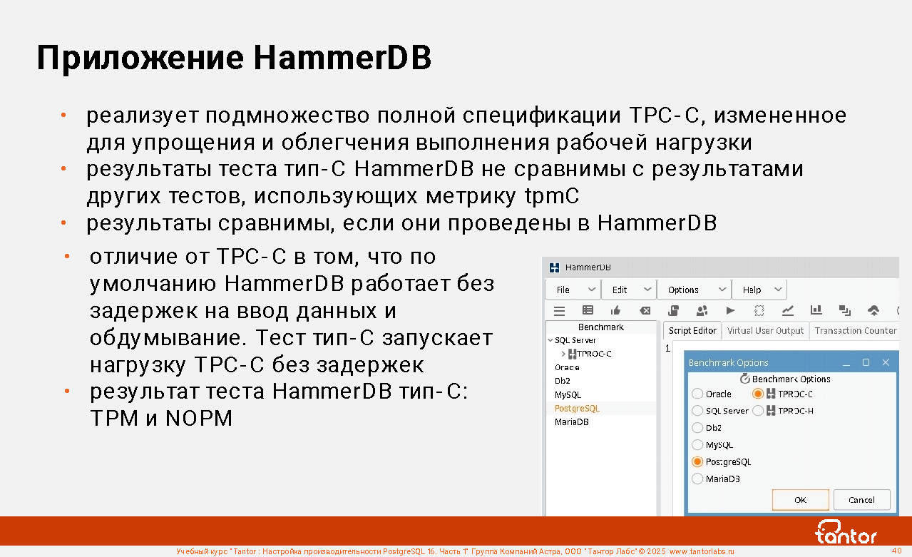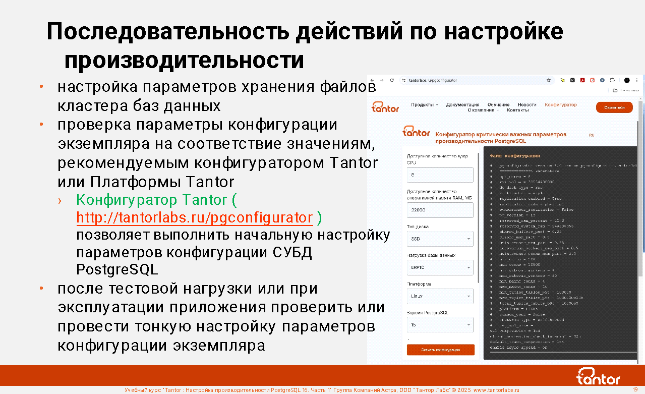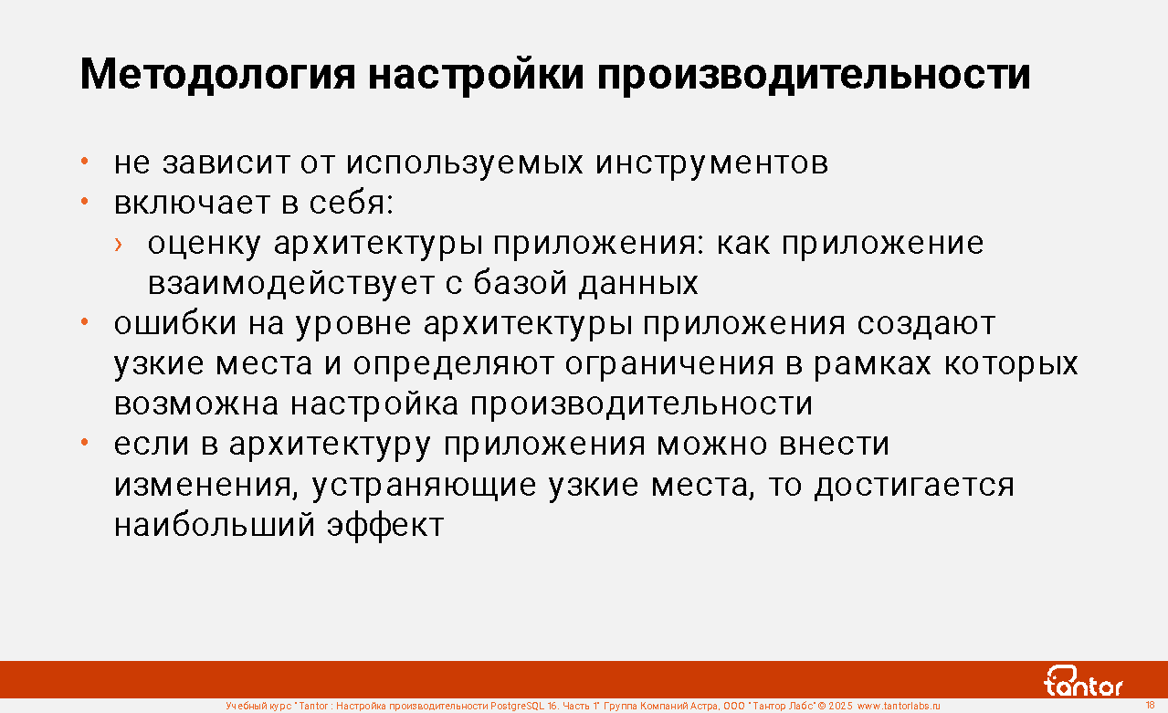 Курс предназначен для администраторов и разработчиков, в задачи которых входит настройка производительности работы приложений с СУБД PostgreSQL.