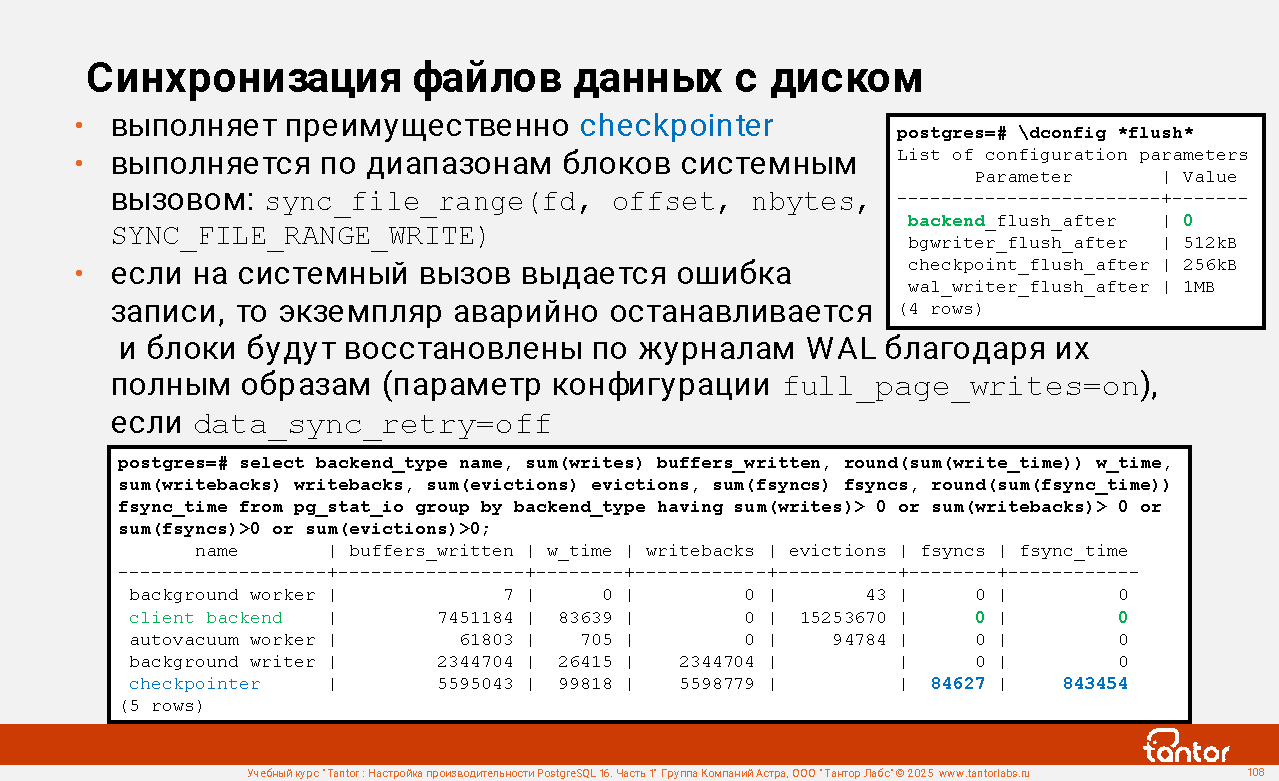 Сброс на диск грязных страниц из кэша операционной системы: